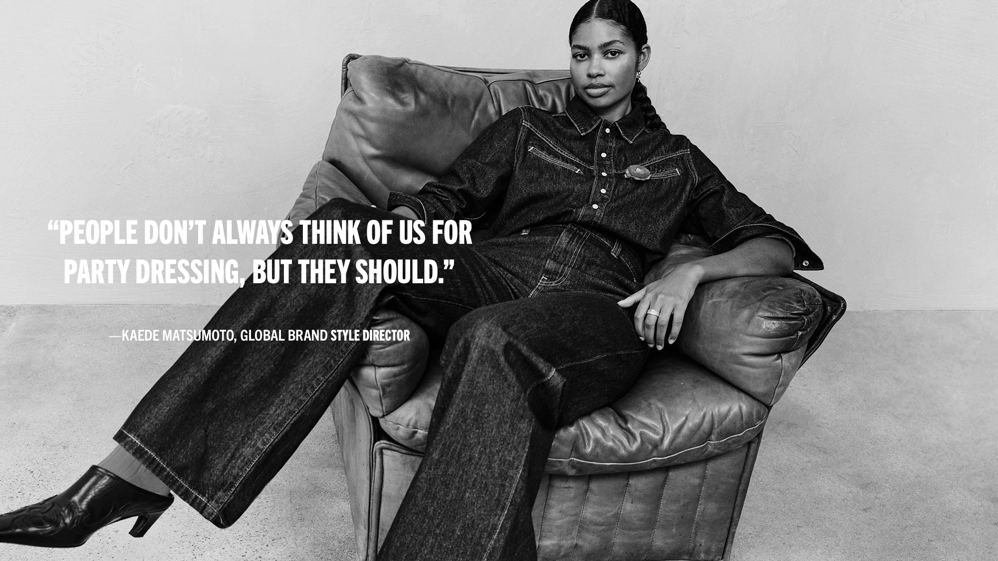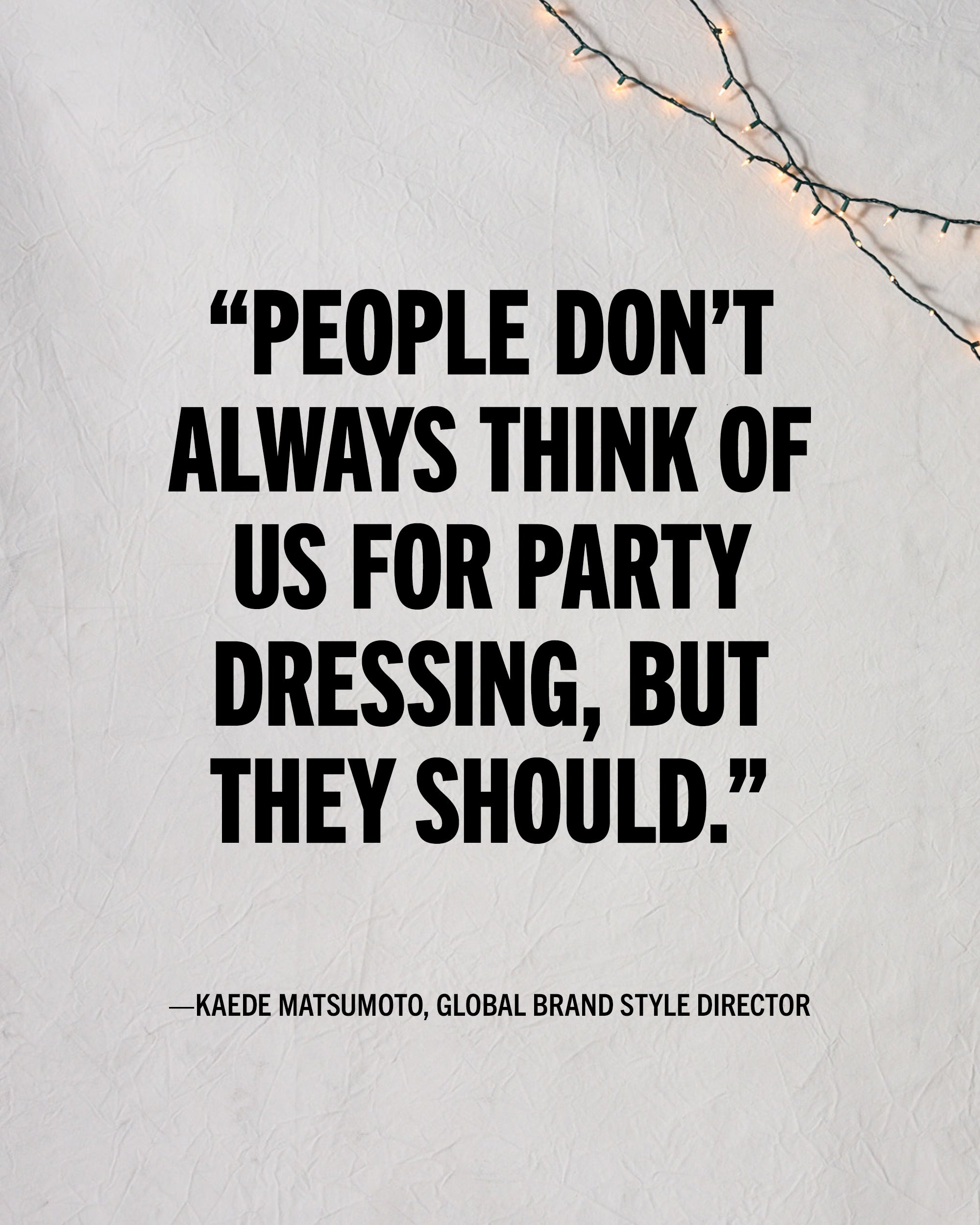 Very Important Piece—like plaid corduroys ready-made for festive occasions, or a denim bustier you can repurpose year-round. Then, build around it.