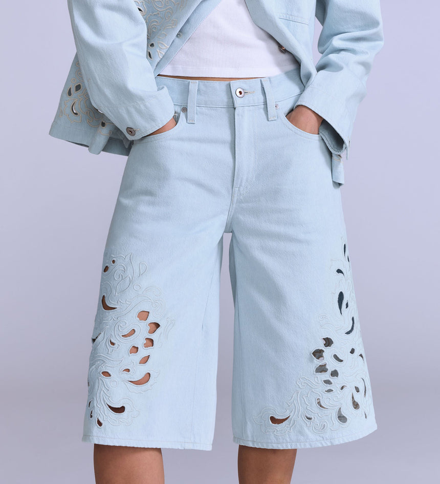 Levi's® Blue Tab™ is an elevated collection that infuses our iconic denim heritage with traditional craftsmanship. Expect thoughtful details, sharp tailoring and finishes that are rich with character.. Our Embroidered Bandit Shorts are cut loose for extra room and feature a mid rise with embroidered detailing.