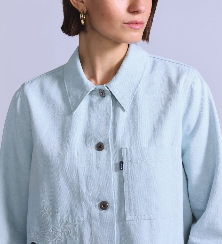 Levi's® Blue Tab™ is an elevated collection that infuses our iconic denim heritage with traditional craftsmanship. Expect thoughtful details, sharp tailoring and finishes that are rich with character.. We took the iconic shape of our Trucker Jacket and gave it a structured upgrade for our Embroidered Bandit Trucker Jacket. Then, we added embroidery detailing and paired it with premium Japanese...