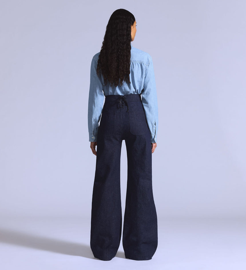Levi's® Blue Tab™ is an elevated collection that infuses our iconic denim heritage with traditional craftsmanship. Expect thoughtful details, sharp tailoring and finishes that are rich with character.. Made with a flattering high rise, our Mariner jeans feature wide-leg cut and classic, non-stretch denim.