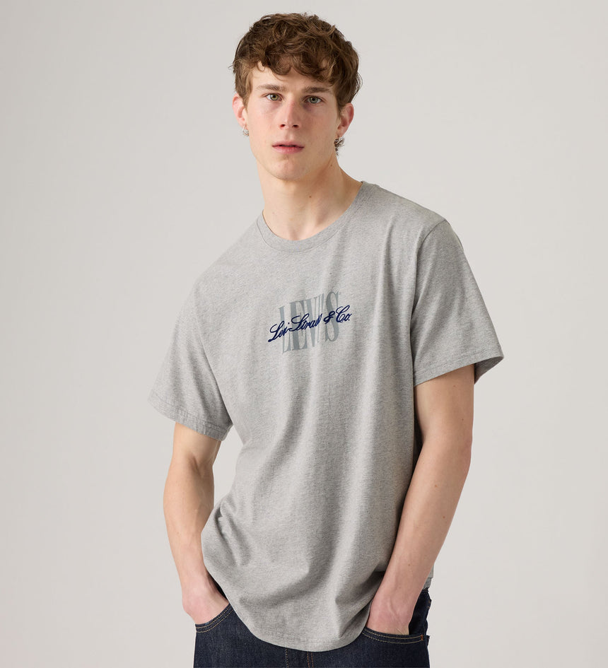 Jeans and a tee—name a more iconic duo, we’ll wait. Made with a easy fit, this Relaxed Short Sleeve Graphic T-Shirt features signature graphics for an unmistakably Levi's® touch.