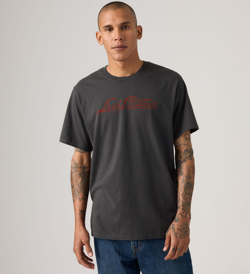 Jeans and a tee—name a more iconic duo, we’ll wait. Made with a easy fit, this Relaxed Short Sleeve Graphic T-Shirt features signature graphics for an unmistakably Levi's® touch.