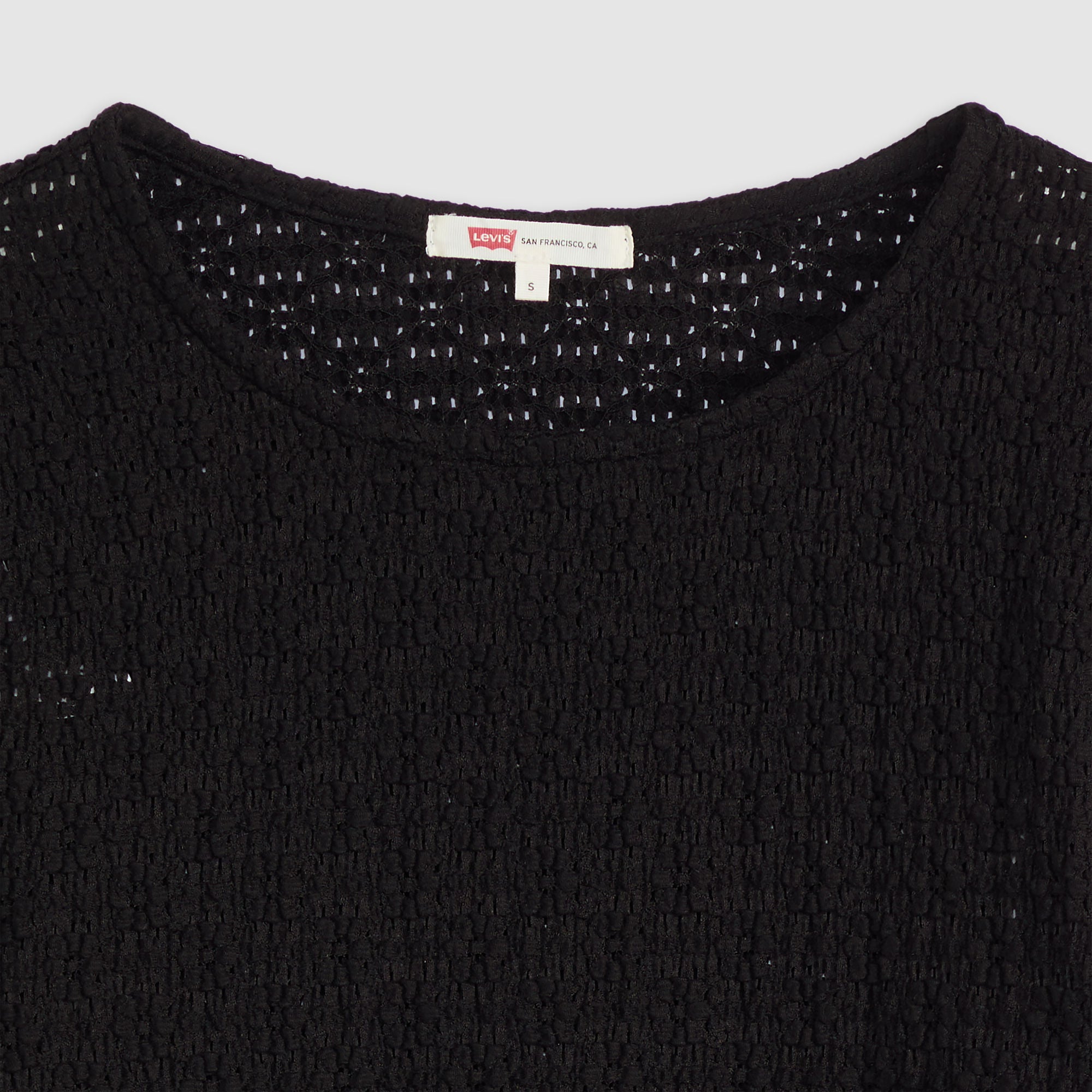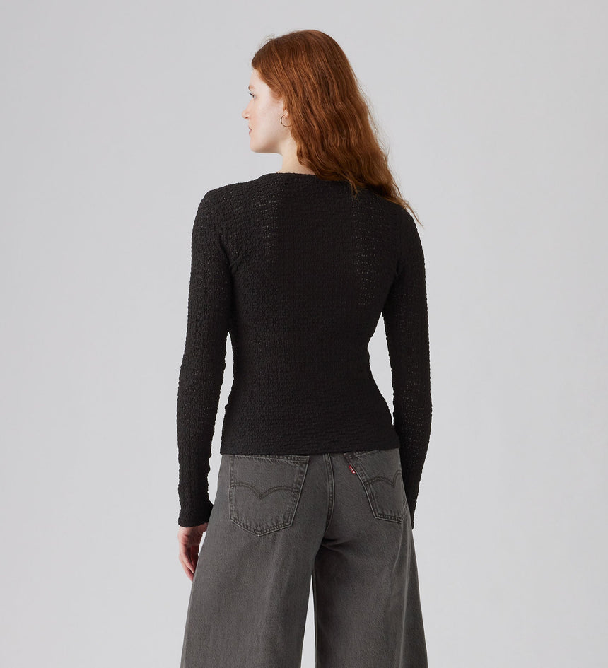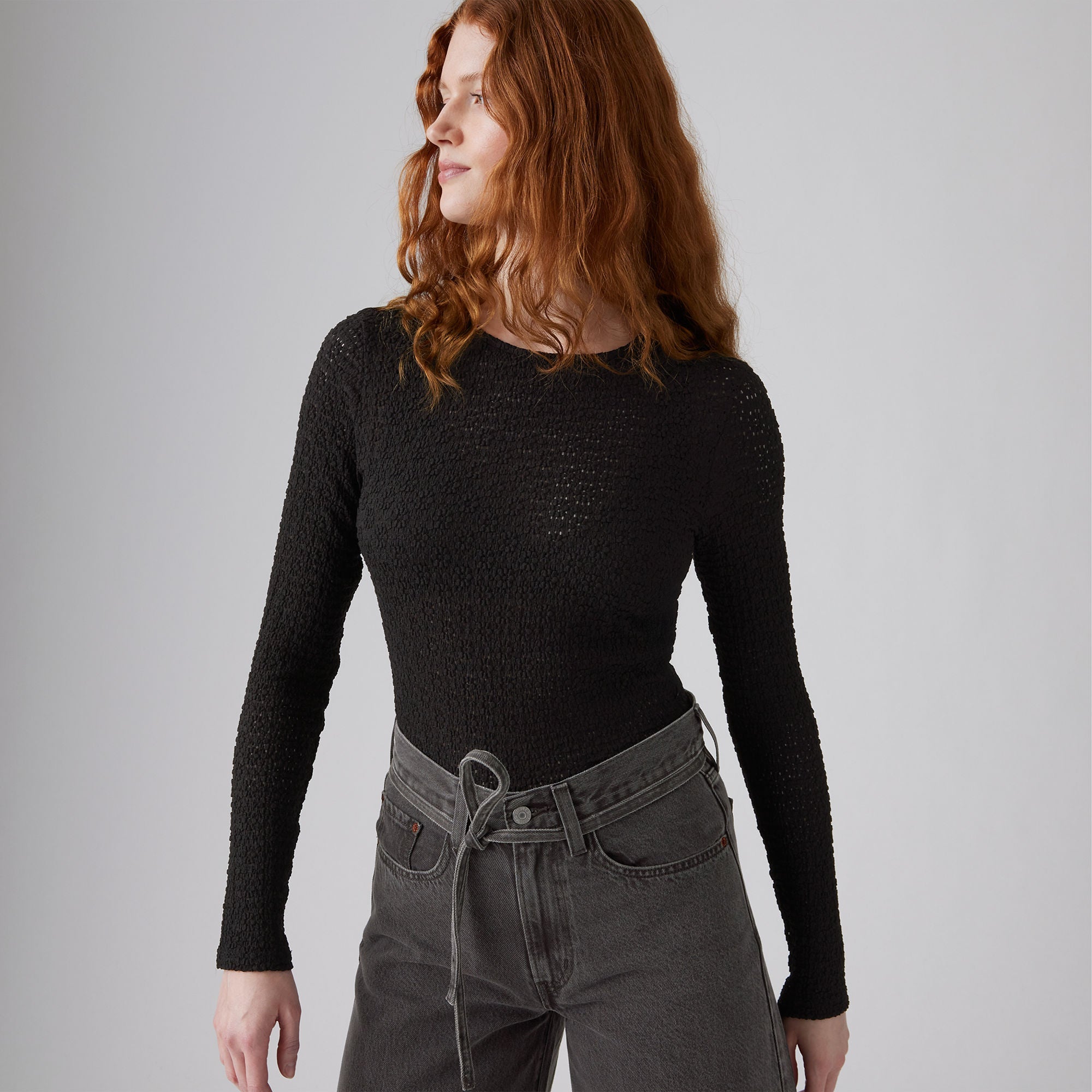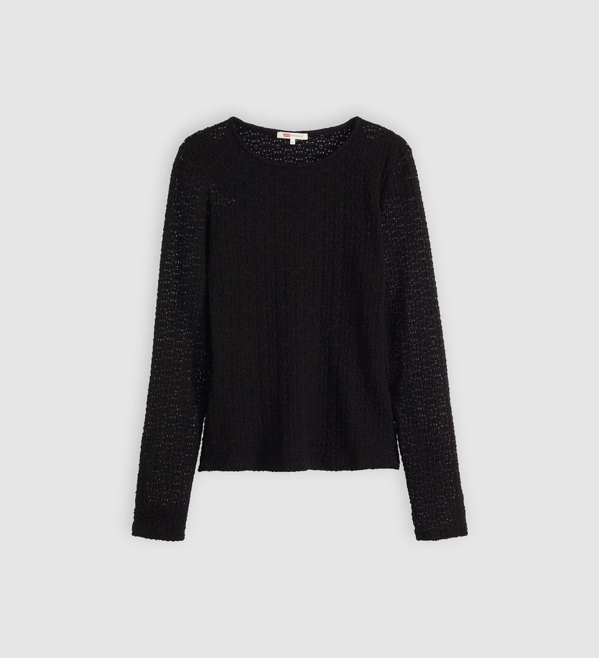 A sheer long-sleeve that isn't boring. Our Anika Crewneck Top features a high crew neckline and an ultra-flattering slim fit with a playful pattern.