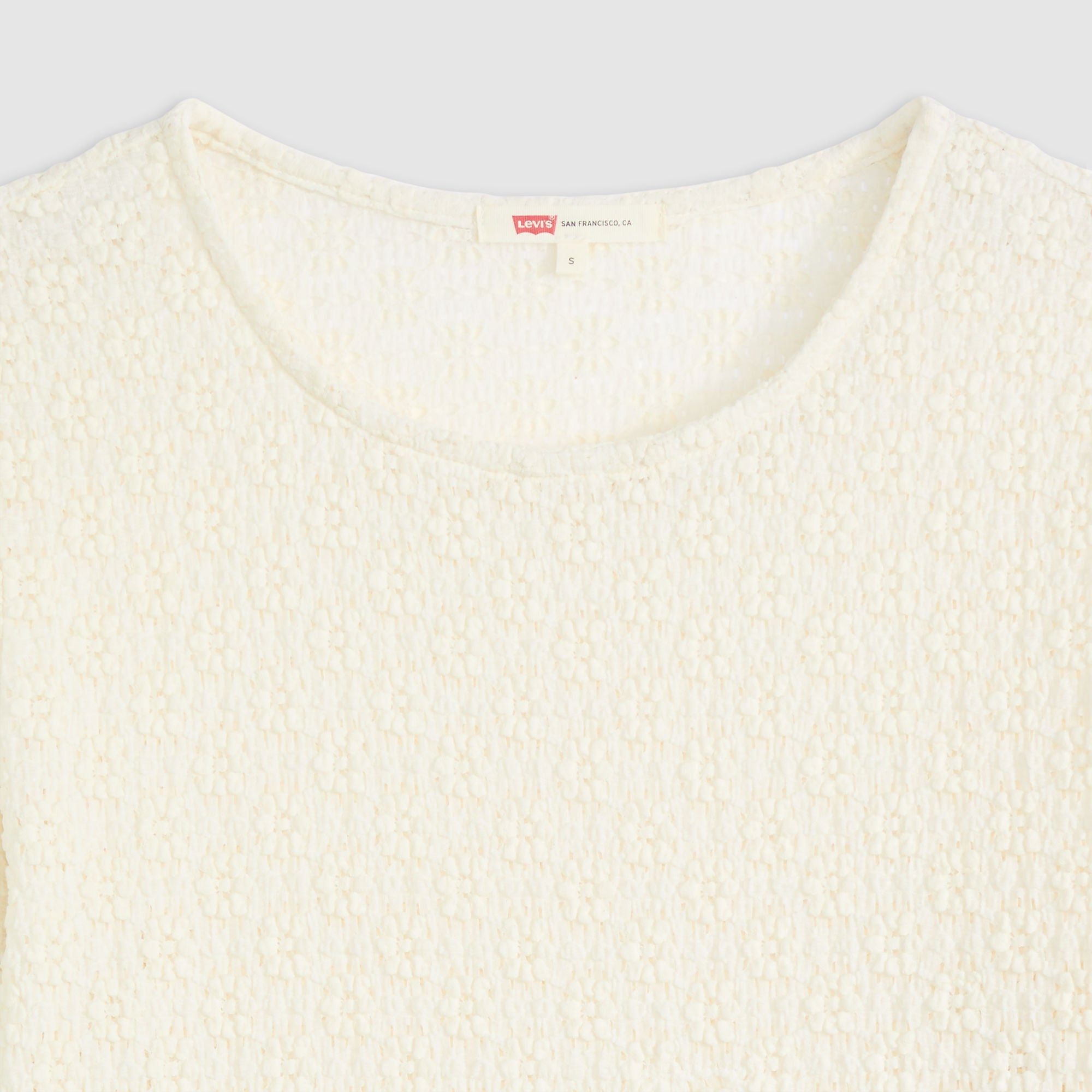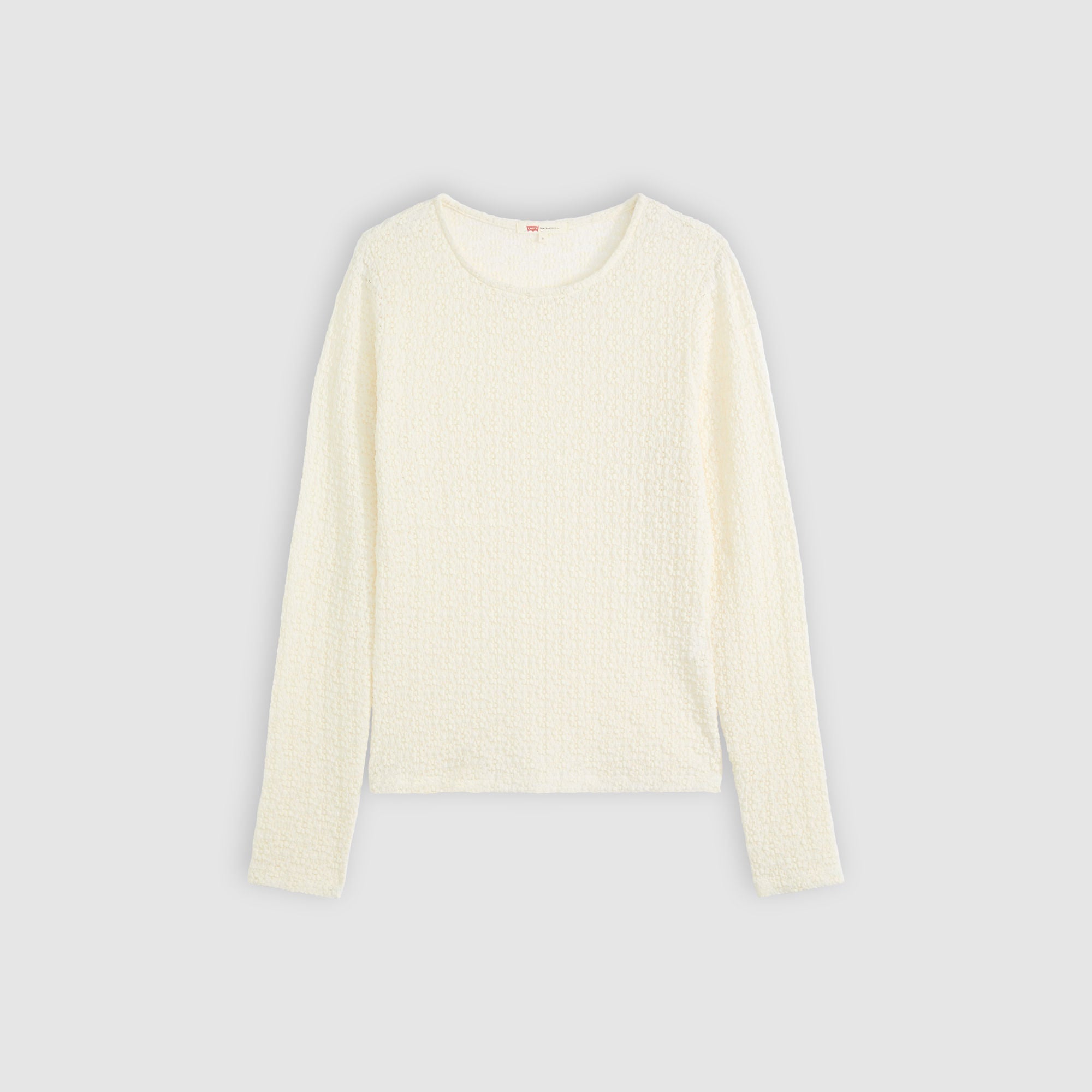 A sheer long-sleeve that isn't boring. Our Anika Crewneck Top features a high crew neckline and an ultra-flattering slim fit with a playful pattern.
