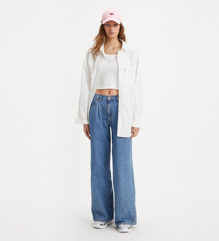 The kind of jeans you might steal from your parent's closet—but baggier. With a mid rise, wide-leg cut and straight leg, our Baggy Dad Wide-Leg jeans are relaxed yet flattering with extra room for a subtle edge.
