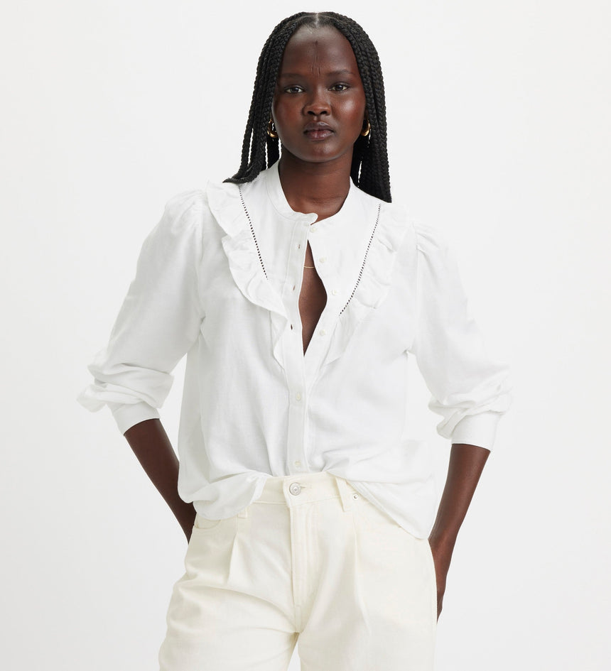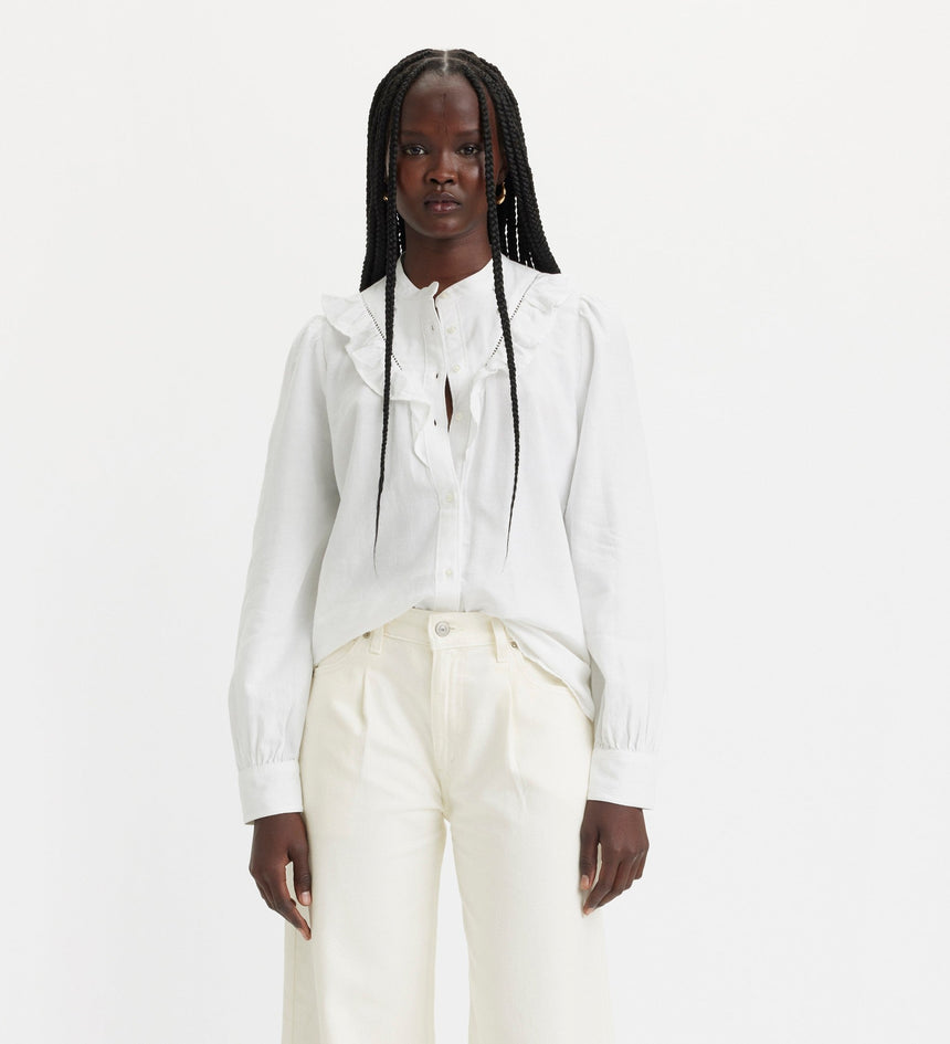 A little feminine. A little western. We made our Carinna Blouse with a classic button-up front, ruffle detailing, blouson sleeves and an easy fit.