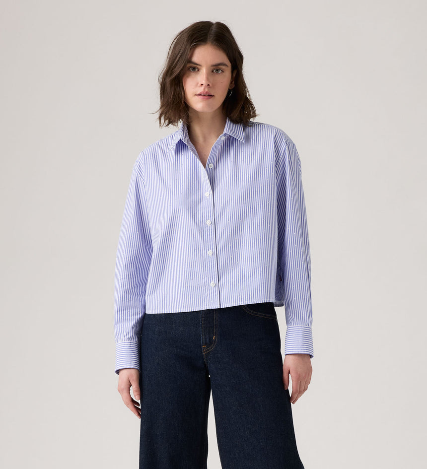 Not your average button-up. This Cropped Harlie Shirt features a sleek collar, a just-right relaxed fit and a button-up front.