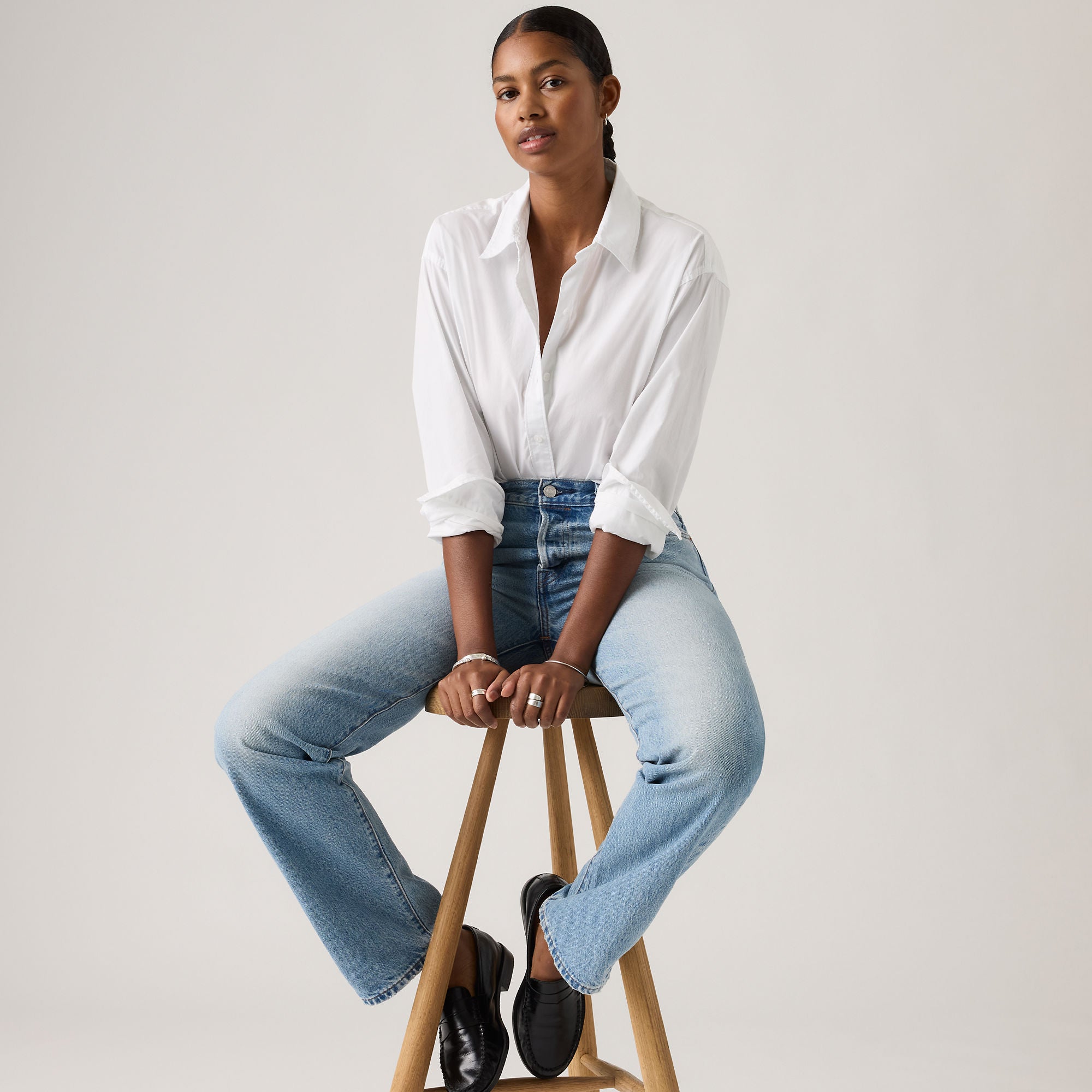 - A relaxed button-up shirt