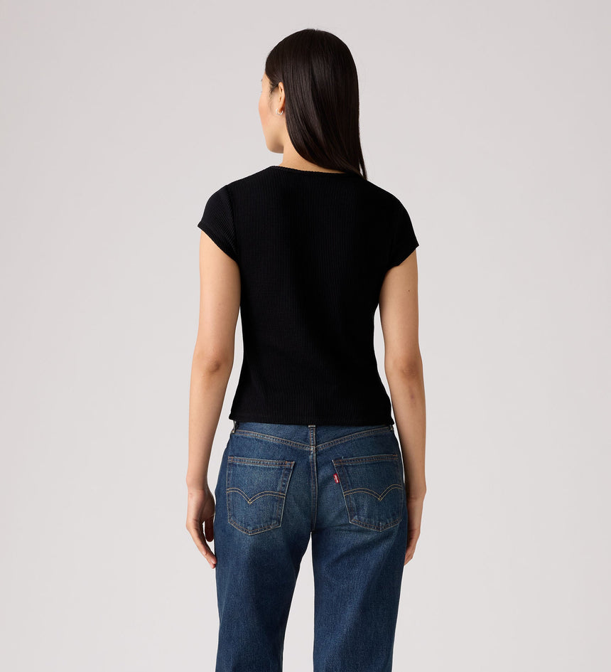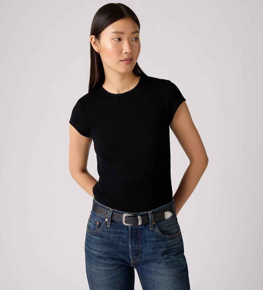 Inspired by one of the first knitwear pieces we made in the early 1900s, Levi's® Dry Goods was resurrected in the late '90s—and now, it's back again.. This Cap-Sleeve Tee is as comfortable as it is practical thanks to its waffle-knit design, cap sleeves and figure-hugging slim fit.