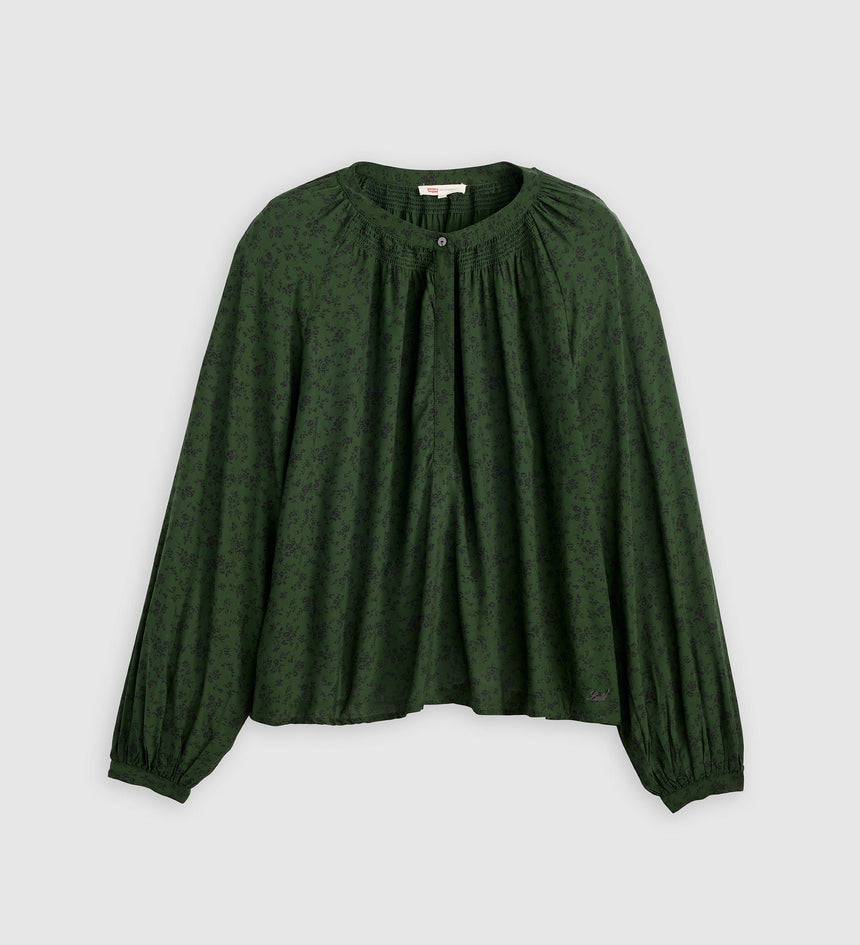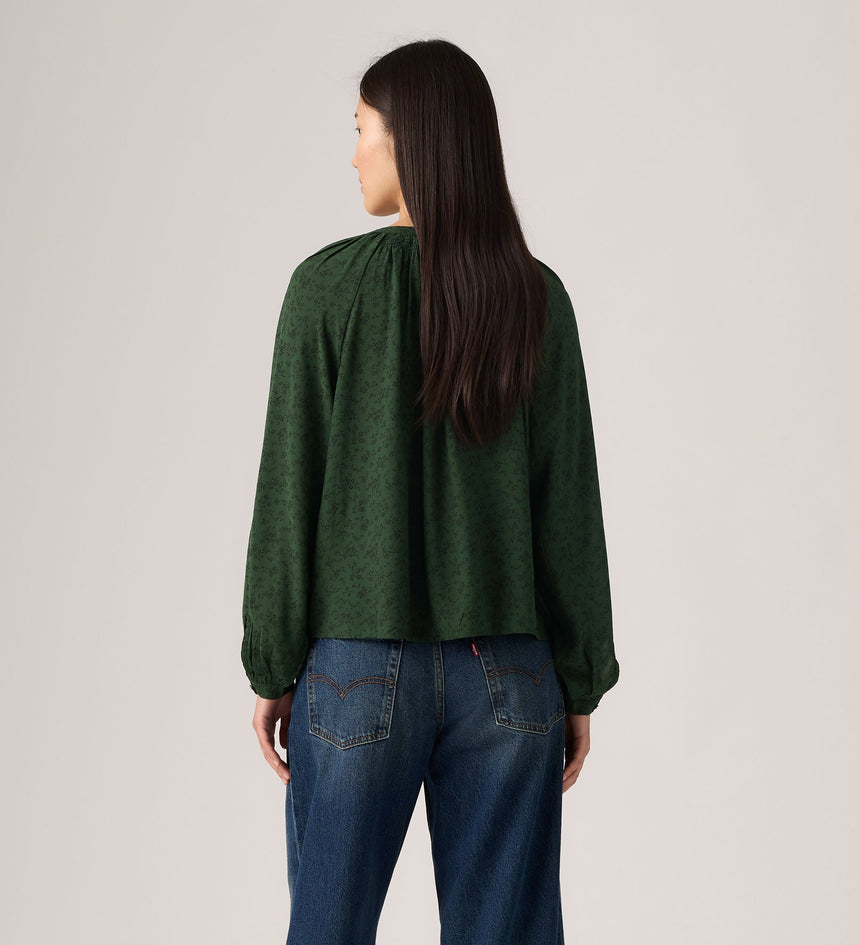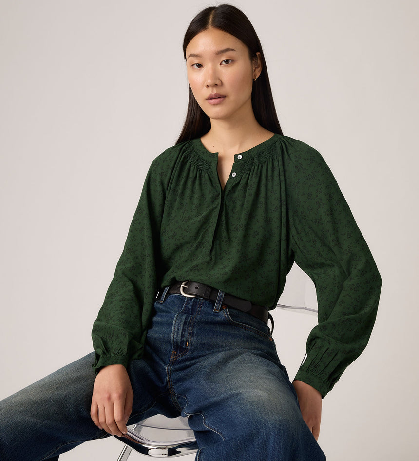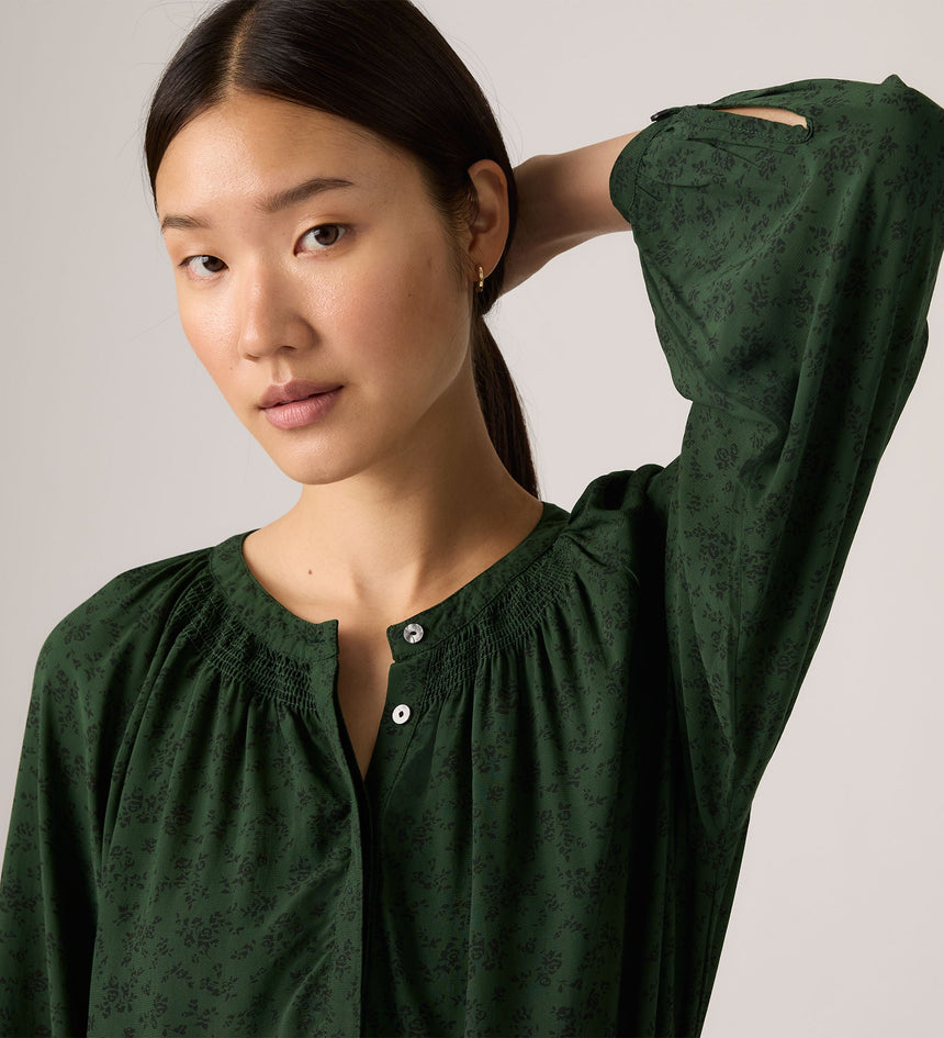 We call our Estelle Long-Sleeve Blouse a wear-everywhere favorite. It features a button-up collar, voluminous sleeves and flowy fit.