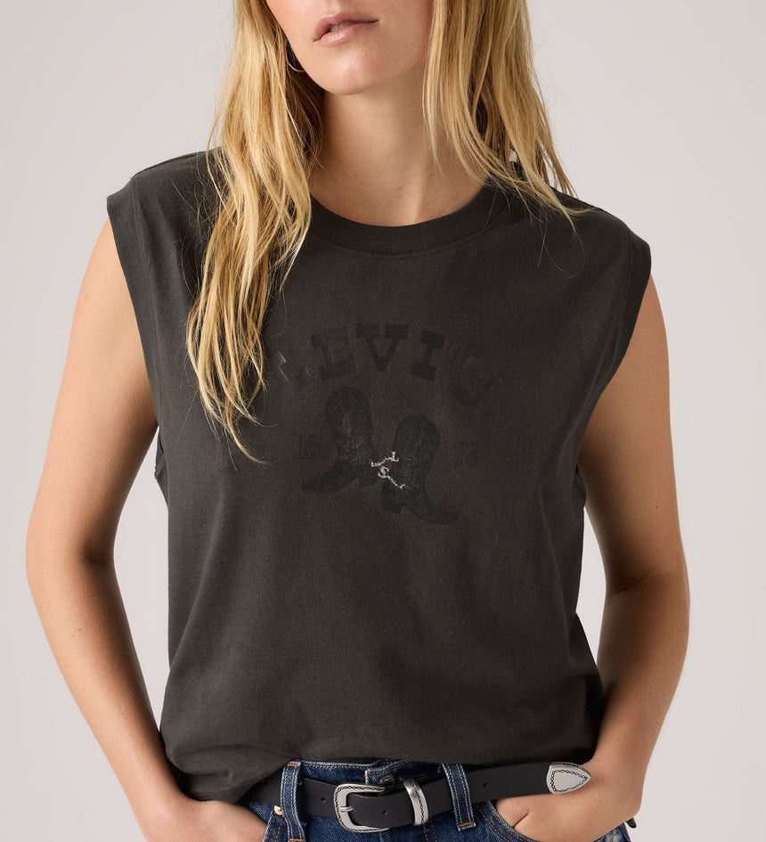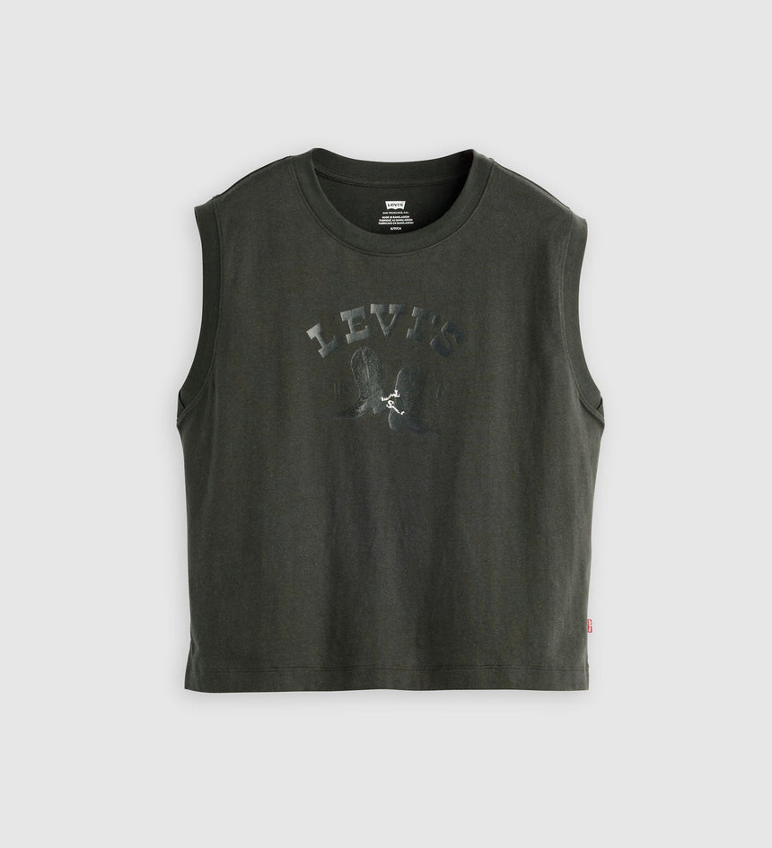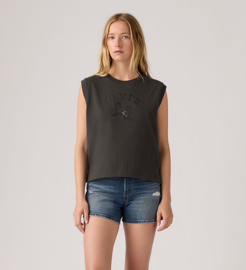 The definition of a warm-weather staple, our Graphic Boxy Tank features a crew neckline, a sleeveless design and a standard fit for extra movement.