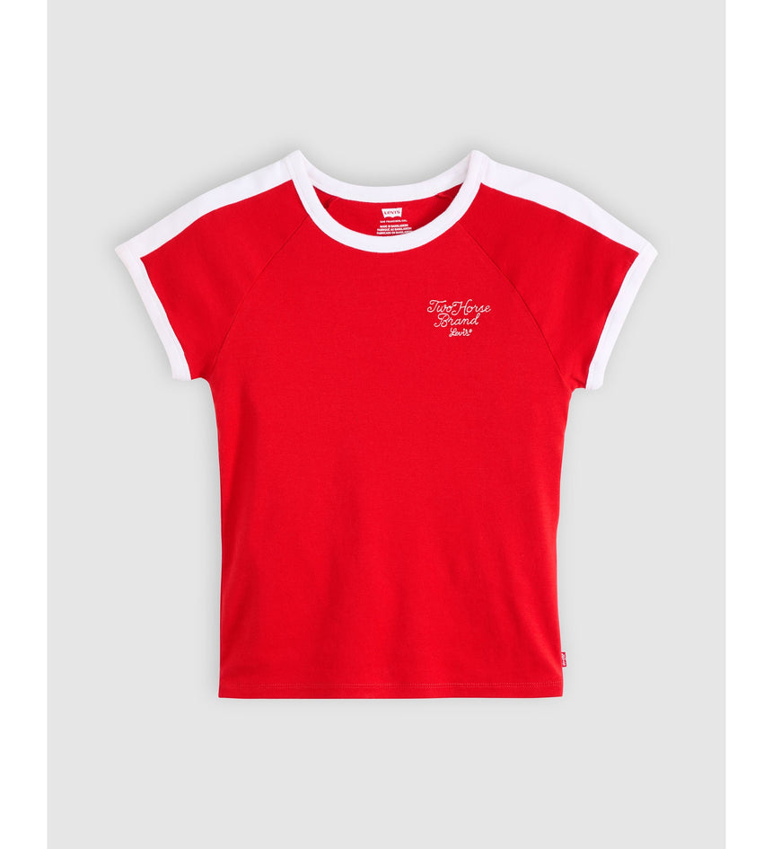 There's nothing basic about our Graphic Riley Raglan Tee. Cut with a slim fit, we designed it with easy short sleeves, a ringer design and topped it off with a one-of-a-kind Levi's® logo.
