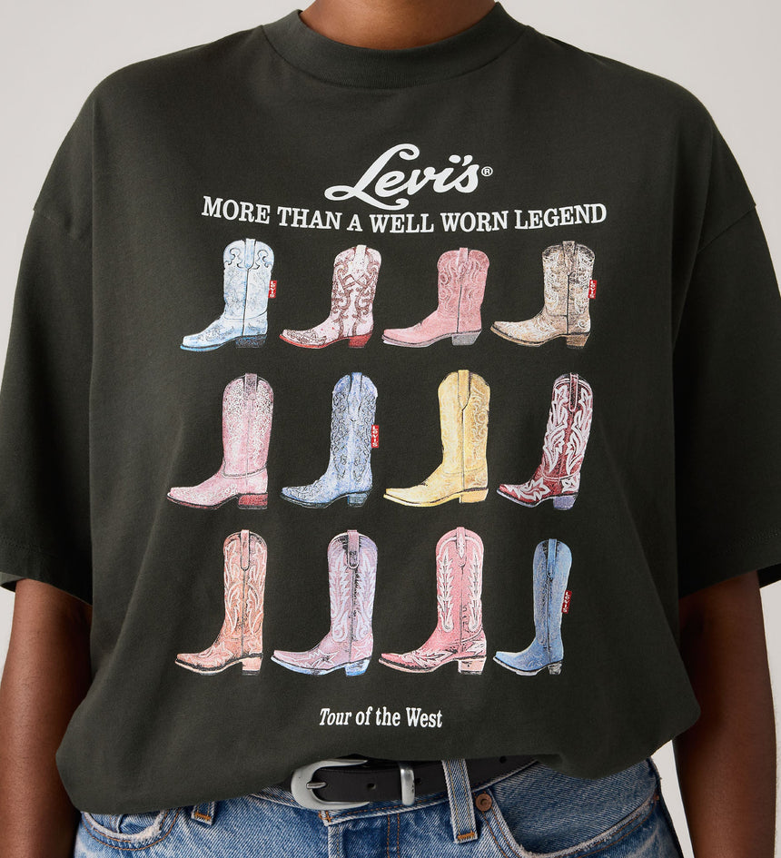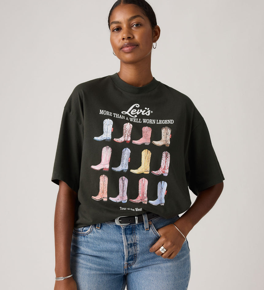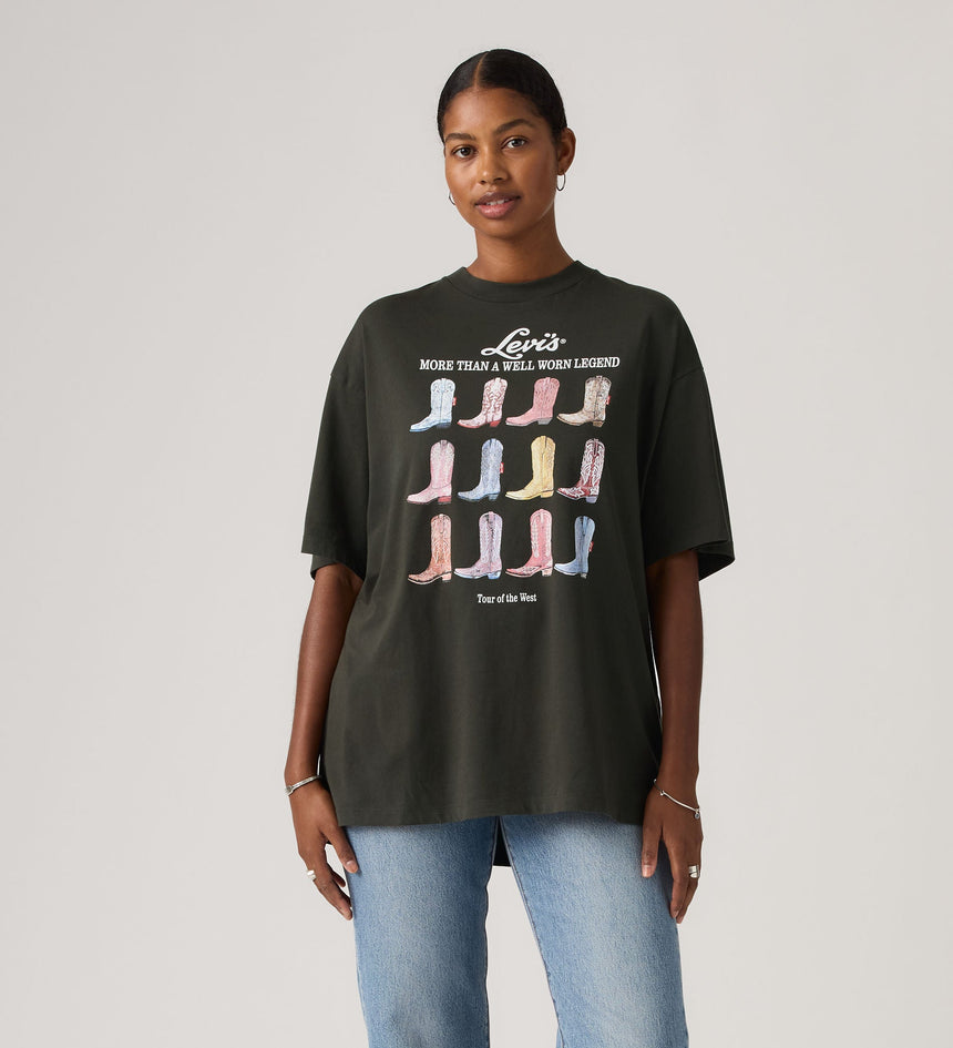 - A loose, oversized fit tee
