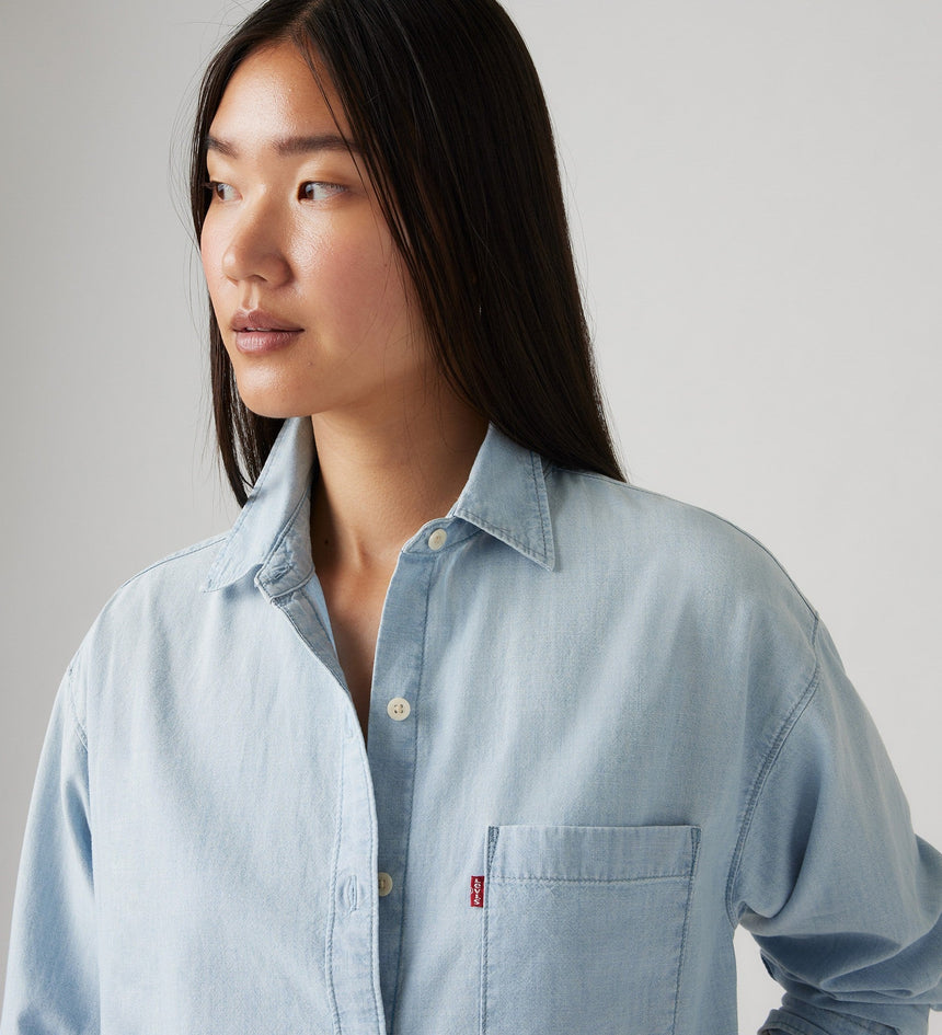 Keep it laid-back with our Harlie Boyfriend Shirt. It's a relaxed-fitting, do-it-all wardrobe stable that looks equally good by itself or thrown over your favorite tee.