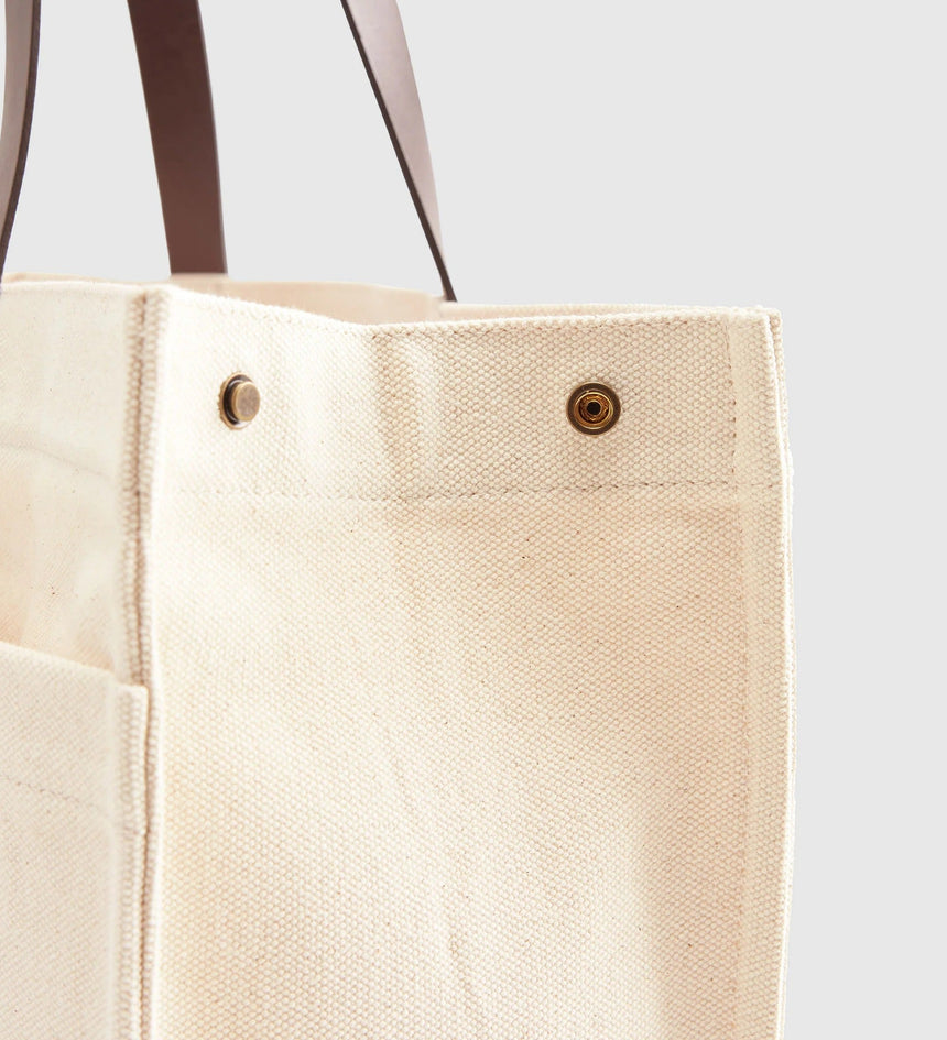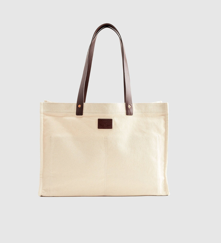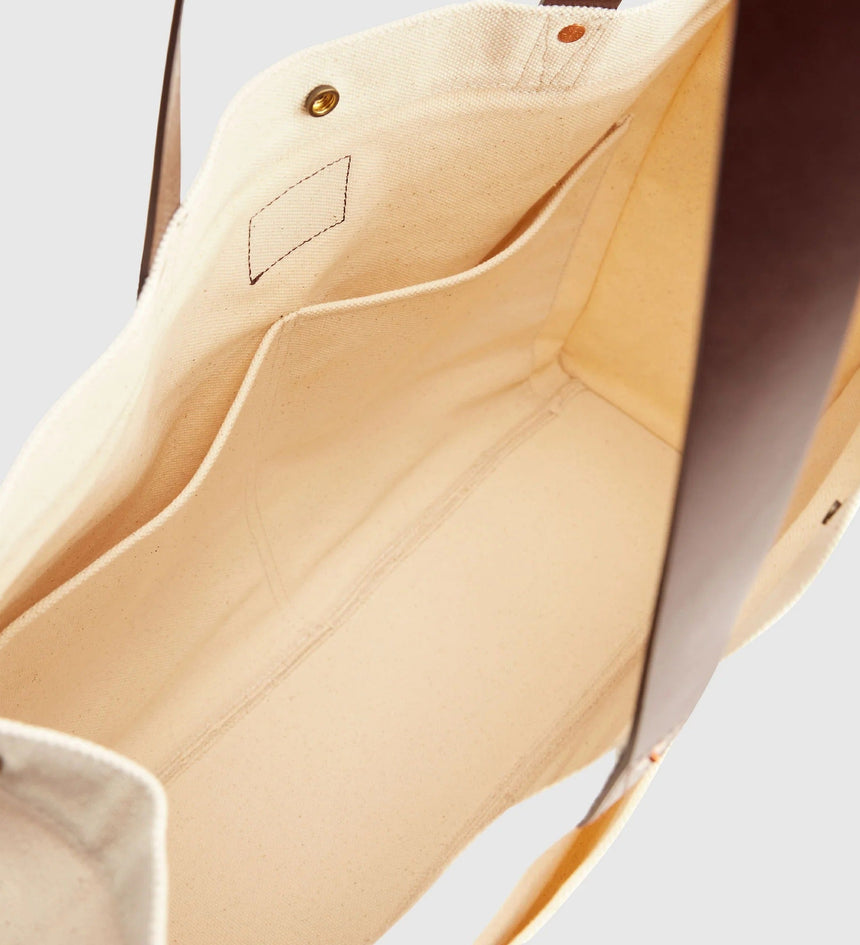 Inspired by our archive, this Heritage All-Day Tote Bag is the ideal throw-it-all-in-and-go bag. We designed it with leather straps, a main compartment with a snap closure, an interior patch pocket, rivets for reinforcement and gave it two handy top handles.
