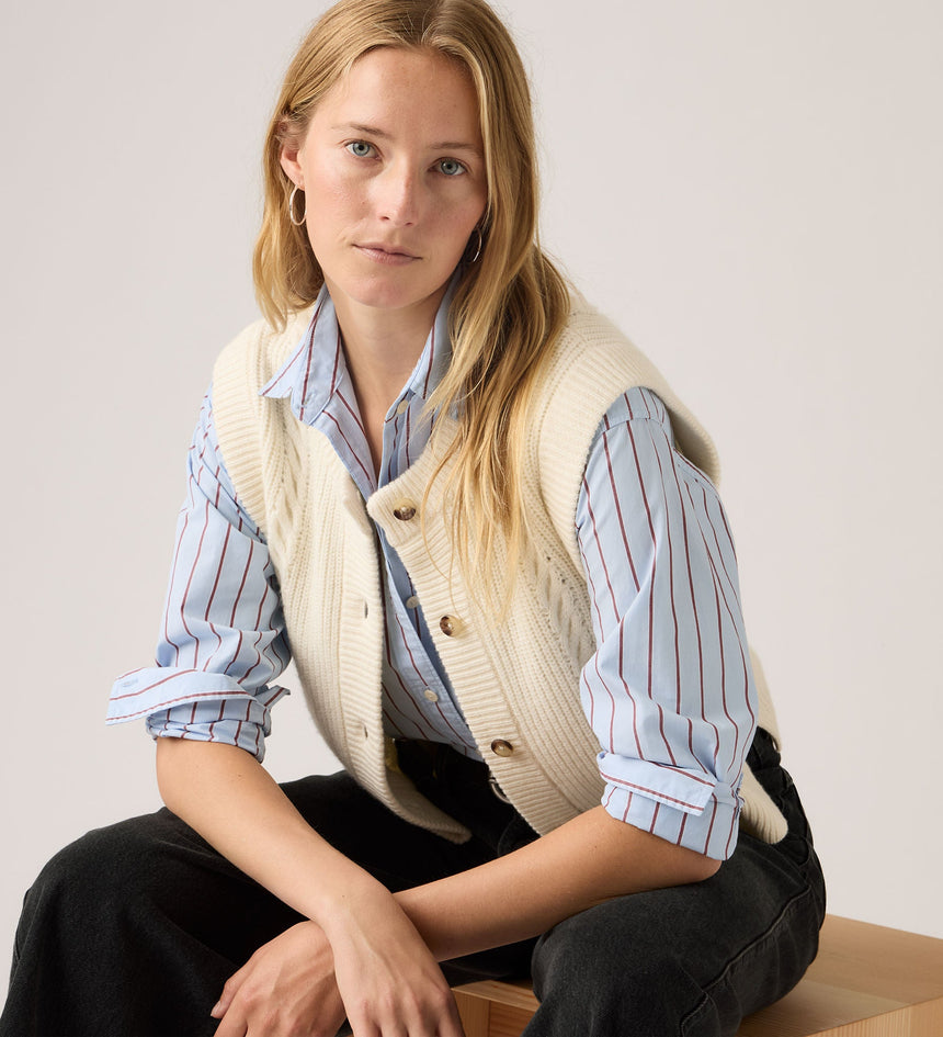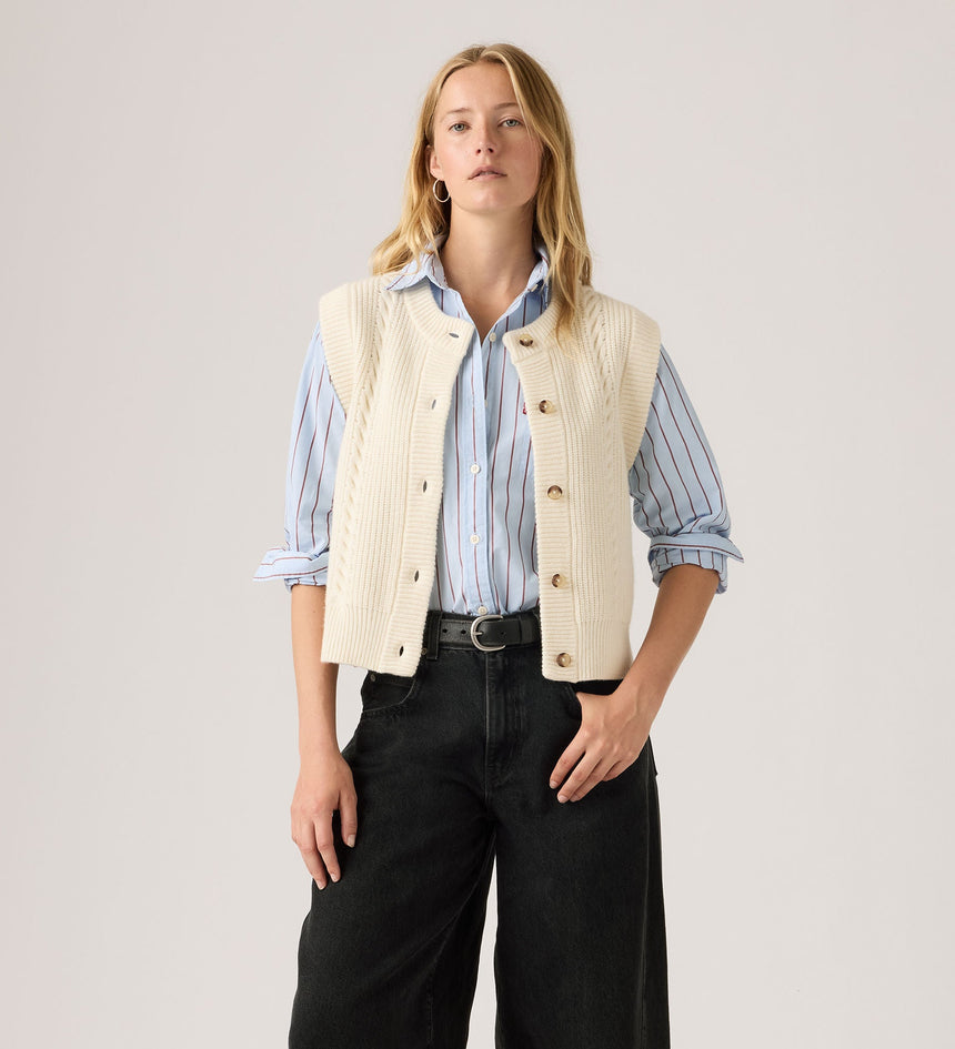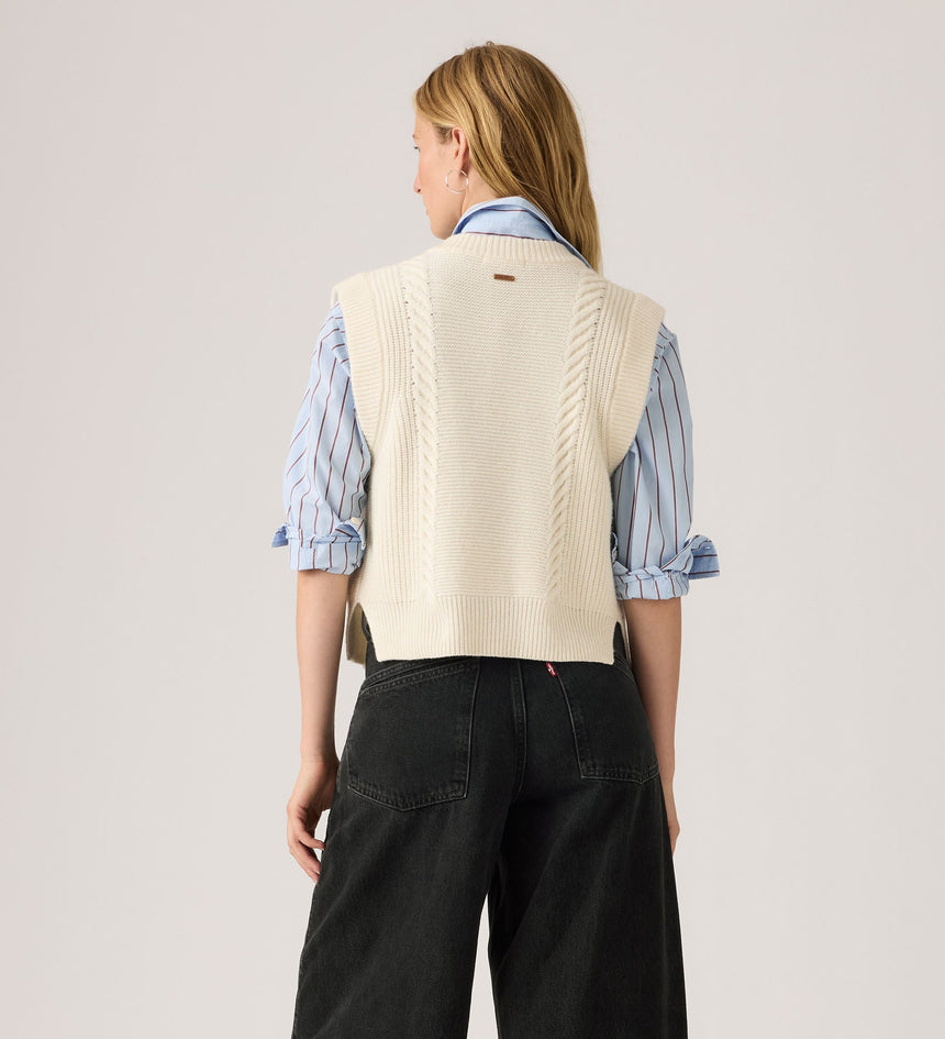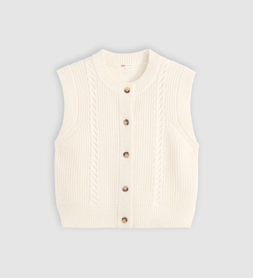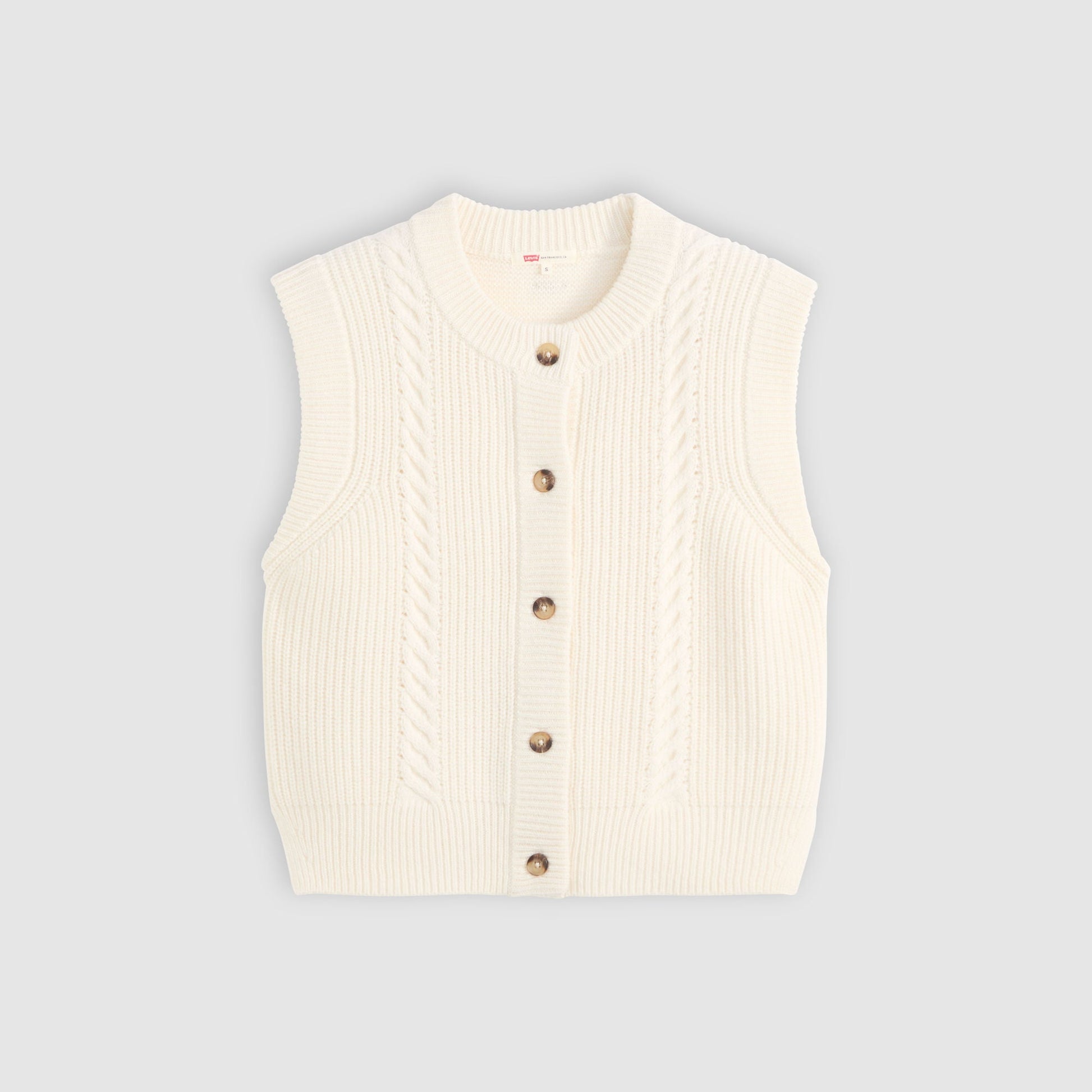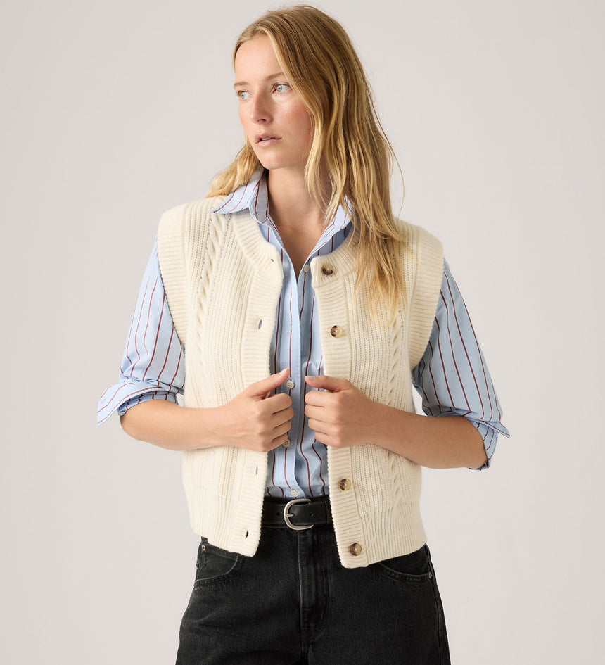 The quintessential, ultra-comfortable cable-knit vest. Our Ines Cable Sweater Vest features a crew neckline, ribbed edges and a button-up front.