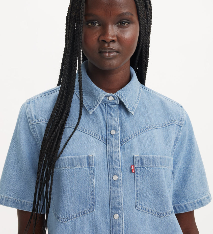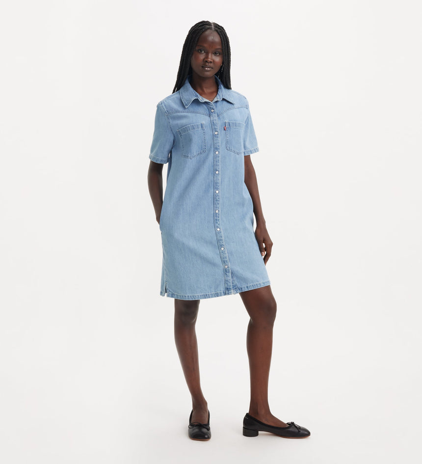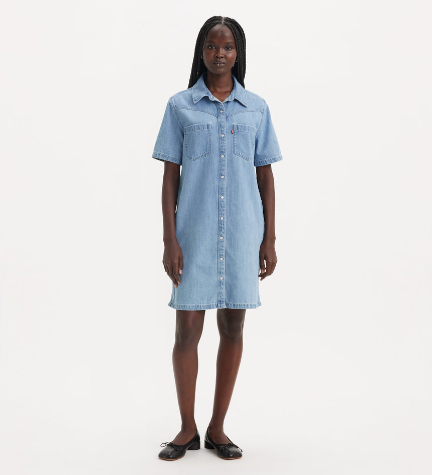 When the sun's out, so is our Louisa Short-Sleeve Dress. This easy dress features a button-up front, two chest pockets and a relaxed, mini cut.
