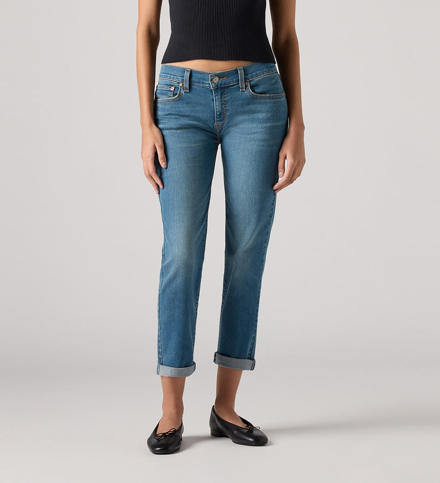 When it comes to being comfortable, no jean has your back quite like our Mid-Rise Boyfriend. Loose and slouchy, this pair works whether you want to keep things ultra-laidback or all dressed up.