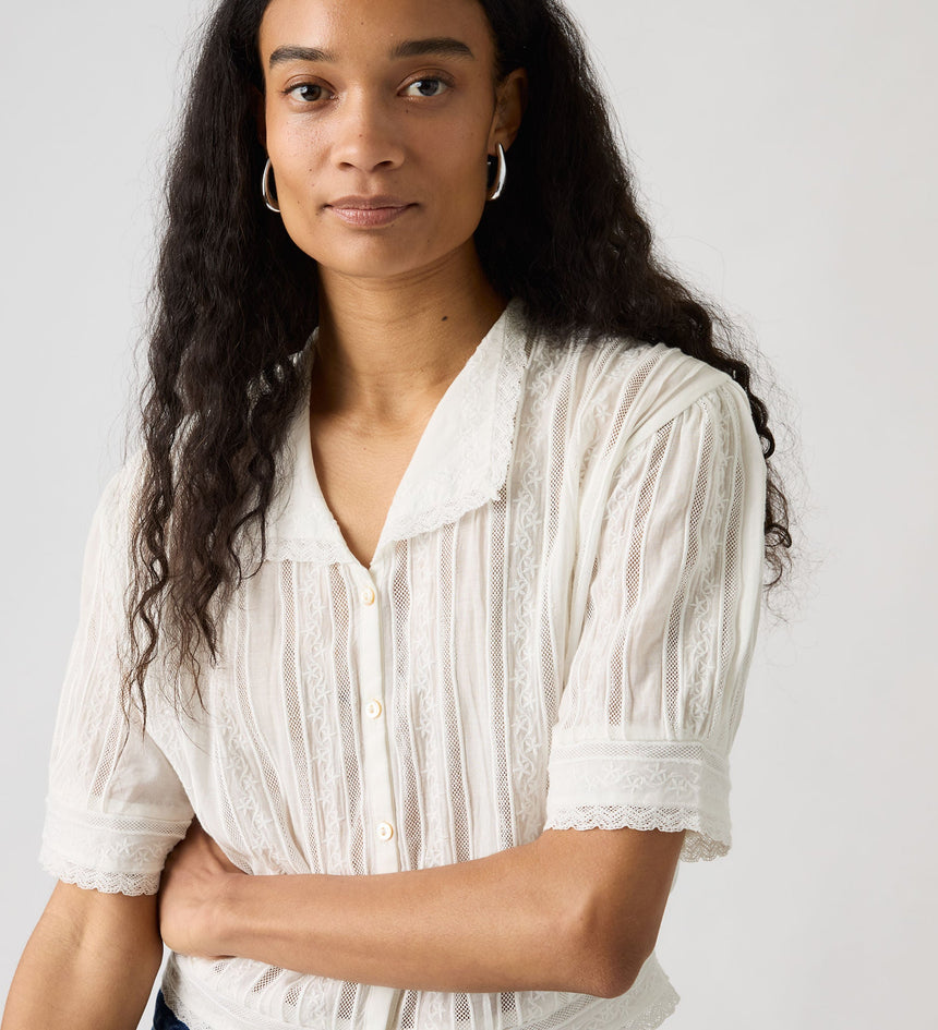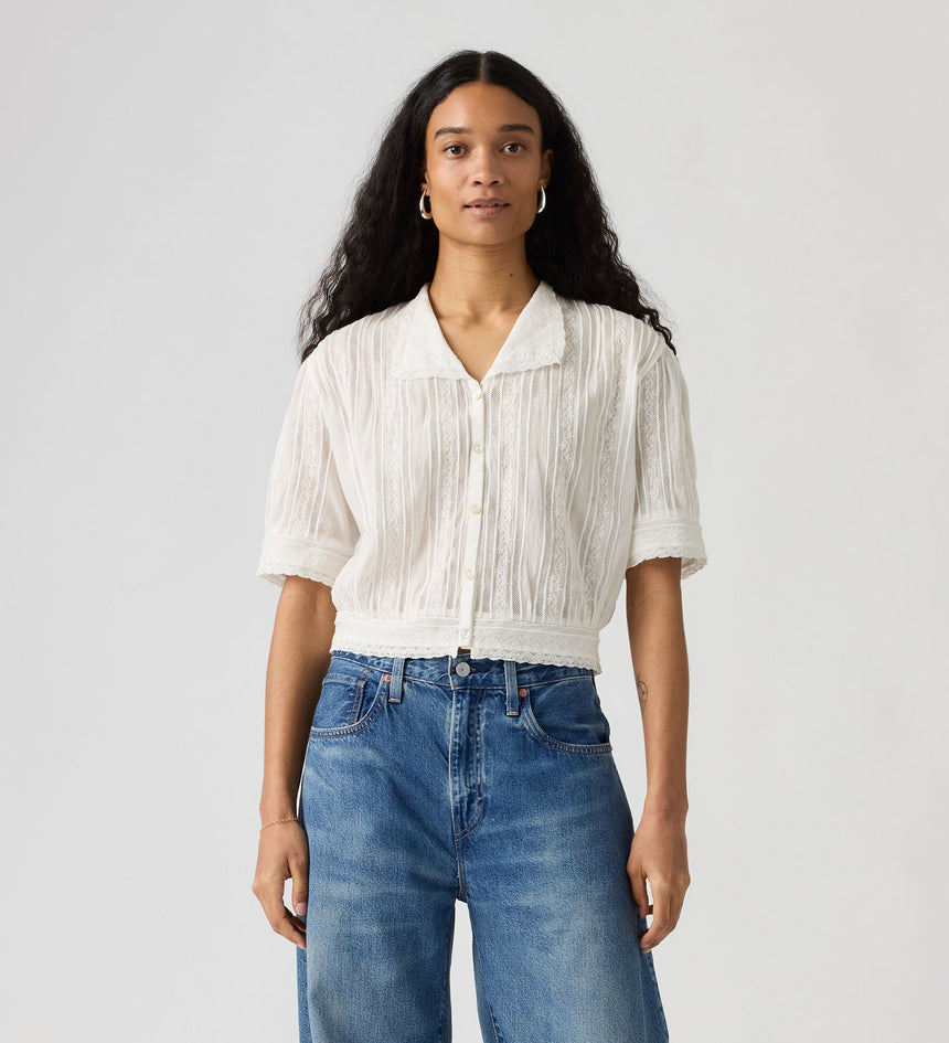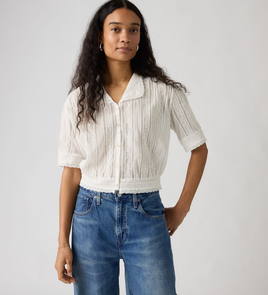 Levi's® Blue Tab™ คือคอลเลคชั่นที่ยกระดับขึ้นไปอีกขั้น โดยผสานมรดกแห่งเดนิมอันเป็นเอกลักษณ์ของเราเข้ากับงานฝีมือแบบดั้งเดิม คุณจะได้พบกับรายละเอียดที่พิถีพิถัน การตัดเย็บที่เฉียบคม และการตกแต่งที่เปี่ยมด้วยเอกลักษณ์ เสื้อเชิ้ตแบบกระดุมหน้าสุดคลาสสิกได้รับการยกระดับขึ้นไปอีกขั้น เราออกแบบเสื้อ Bandit Blouse ของเราด้วยทรงมาตรฐานที่สวมใส่สบาย และใช้ผ้าคุณภาพเยี่ยมจากญี่ปุ่น