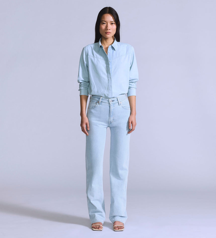Levi's® Blue Tab™ เป็นคอลเลกชั่นระดับสูงที่ผสมผสานมรดกทางกางเกงยีนส์อันเป็นเอกลักษณ์ของเราเข้ากับงานฝีมือระดับสูง รายละเอียดที่พิถีพิถัน การตัดเย็บที่เฉียบคม และการตกแต่งที่เปี่ยมด้วยเอกลักษณ์เฉพาะตัว นี่คือรูปทรงใหม่ของ Blue Tab™ เราพัฒนากางเกงยีนส์รุ่น Plank Straight ของเราด้วยเอวสูงที่ช่วยเสริมรูปร่างและการตัดเย็บทรงตรงยาวเต็มตัวที่ทำให้ดูเรียบหรูและใช้งานได้หลากหลาย พับขอบกางเกงขึ้นเพื่อโชว์รายละเอียดขอบยีนส์ที่คมชัด