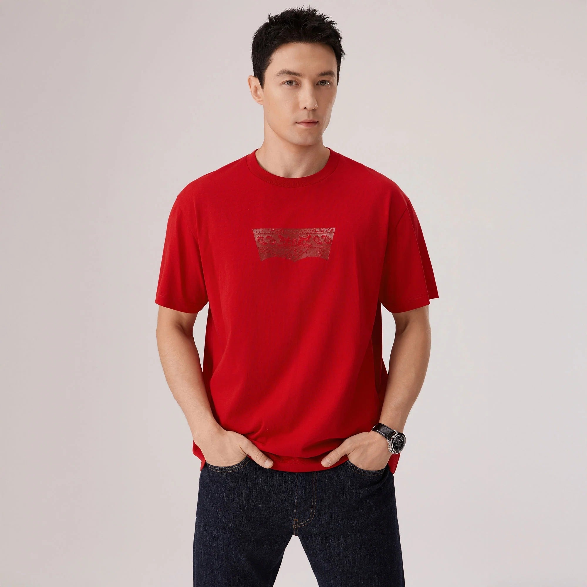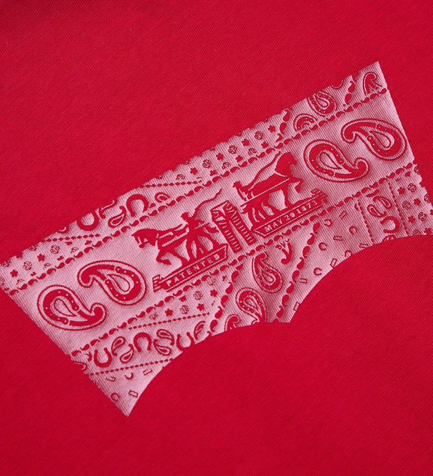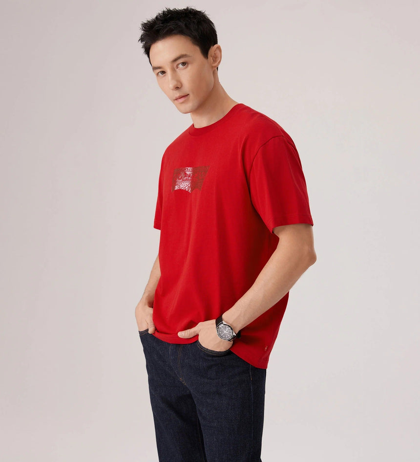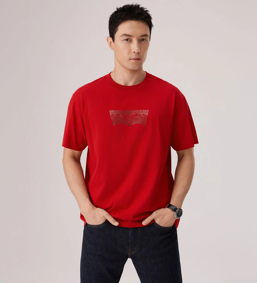 ปีมะเมียมาถึงแล้ว ถึงเวลาเฉลิมฉลอง ปล่อยสิ่งเก่าๆสู่สิ่งใหม่ สไตล์ Levi’s® สดใหม่นำพาโชคลาภมาให้ เรานำโลโก้ปีกค้างคาวสุดคลาสสิกของเรามาปรับให้เข้ากับเทศกาลตรุษจีน เสื้อยืดแขนสั้นลายปีกค้างคาว Foiled ตัวนี้มาพร้อมทรงมาตรฐานและลายพิมพ์ปีกค้างคาวเมทัลลิกรุ่นลิมิเต็ดอิดิชั่น