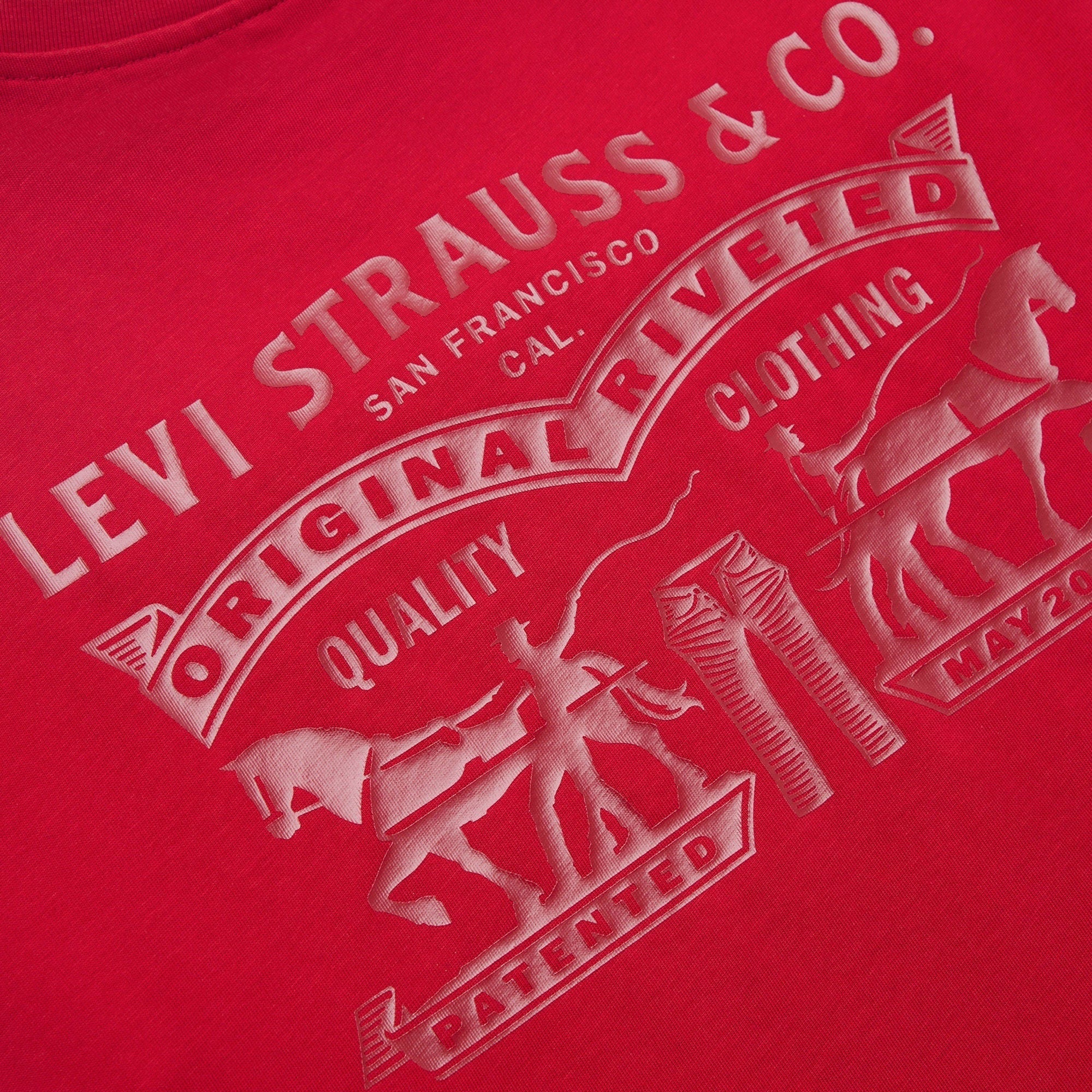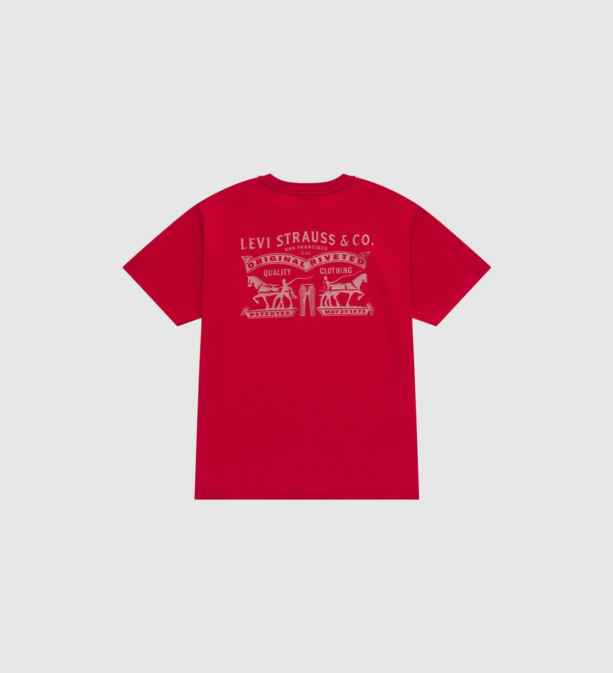 ปีมะเมียมาถึงแล้ว ถึงเวลาเฉลิมฉลอง ปล่อยสิ่งเก่าๆสู่สิ่งใหม่ สไตล์ Levi’s® สดใหม่นำพาโชคลาภมาให้ เสื้อยืดทรงปกติ รุ่นลิมิเต็ดอิดิชั่น ลายกราฟฟิก Two Horse ตัวนี้มีลักษณะทรงหลวมๆ พร้อมโลโก้ปีกค้างคาวสีทองที่ด้านหน้าและดีไซน์กราฟิก Levi's® ที่ด้านหลัง