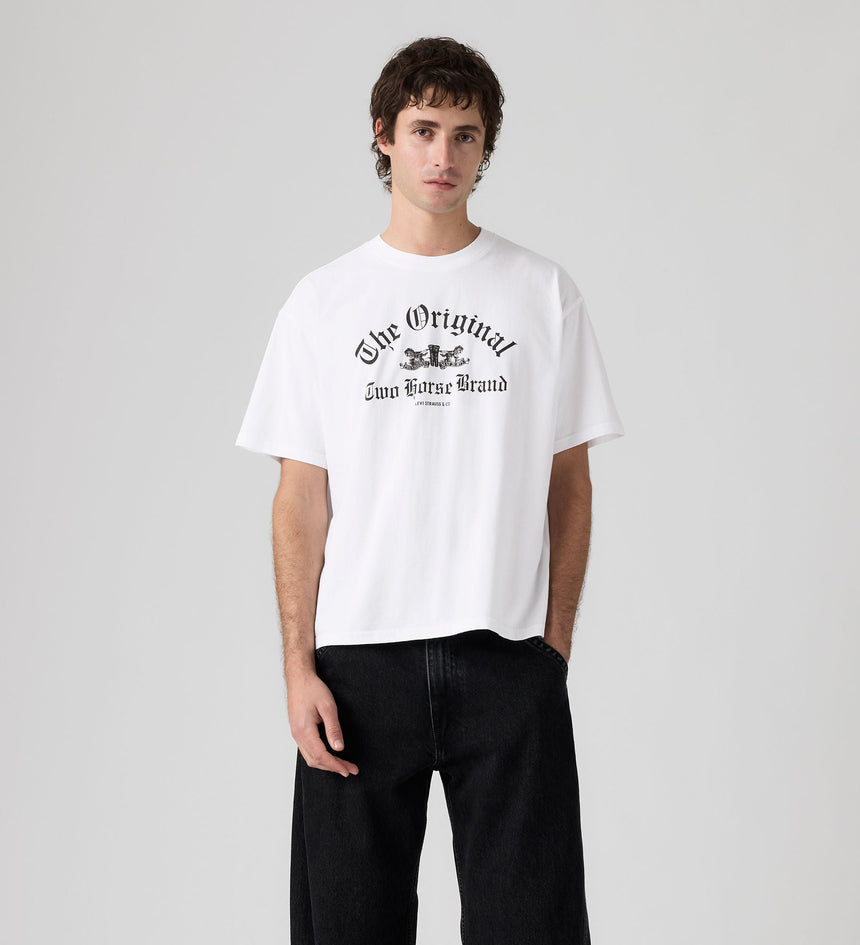 เสื้อยืด Graphic Boxy Tee ที่มาพร้อมคอเสื้อกลมแบบคลาสสิก ทรงหลวมสบายที่กำลังดี และปิดท้ายด้วยลายกราฟิกที่มีเอกลักษณ์ไม่ซ้ำใคร