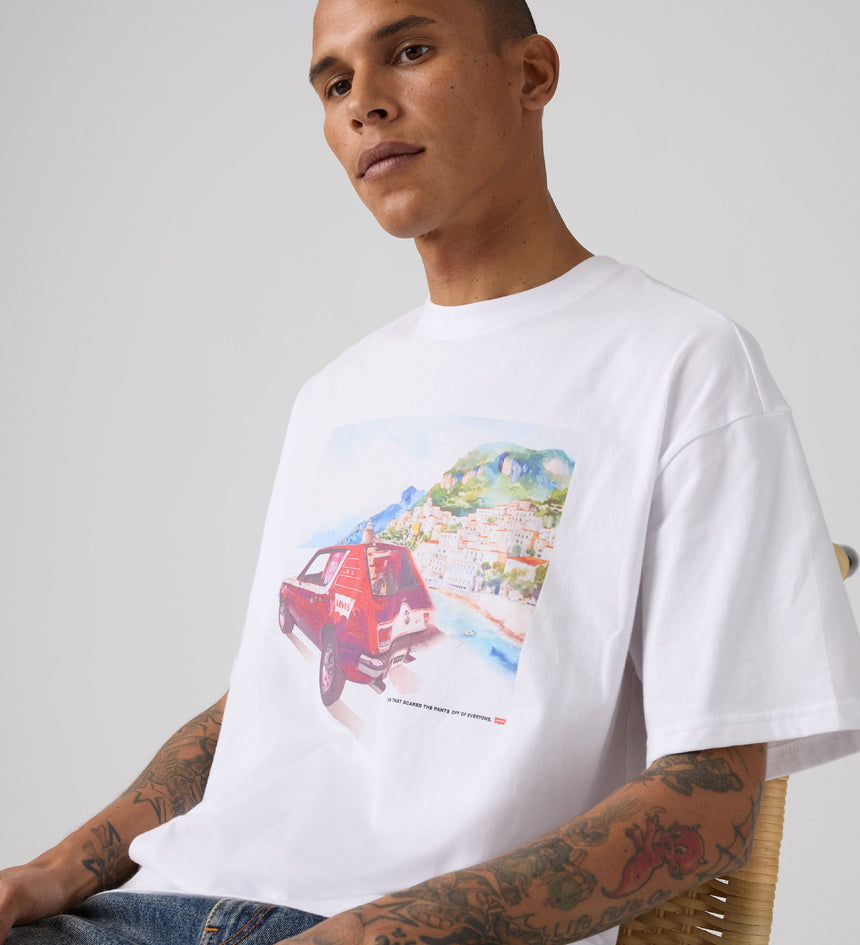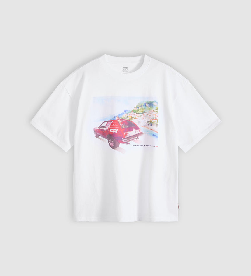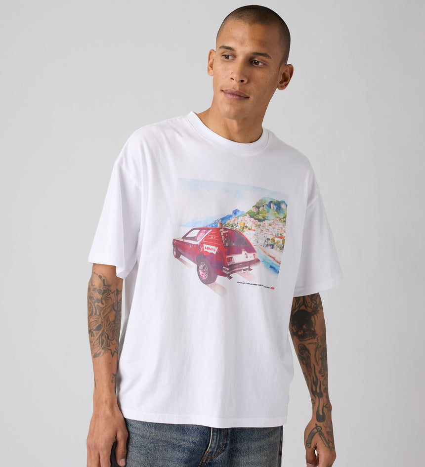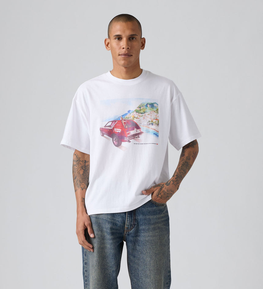 เสื้อยืด Graphic Boxy Tee ที่มาพร้อมคอเสื้อกลมแบบคลาสสิก ทรงหลวมสบายที่กำลังดี และปิดท้ายด้วยลายกราฟิกที่มีเอกลักษณ์ไม่ซ้ำใคร