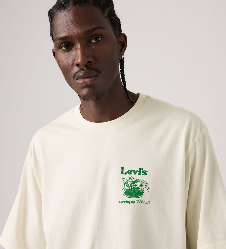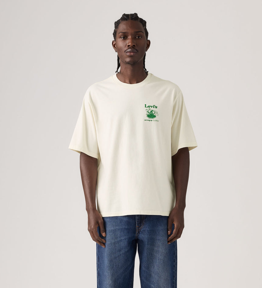 ไม่ถึงกับแขนสั้น แต่ก็ไม่ใช่แขนยาว ทักทายเสื้อยืดลายกราฟิกแบบมีกระเป๋าครึ่งแขนของเราสิ ครบเครื่องทุกความต้องการในเสื้อยืดตัวนี้ ทั้งคอกลมคลาสสิก ทรงหลวมๆ ดีเทลกระเป๋า และแขนสั้นที่ยาวขึ้นเล็กน้อยเพื่อลุคย้อนยุค