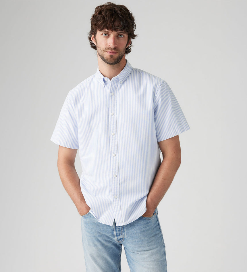 Our denim and shirts were made for each other—and this Short-Sleeve Authentic Button-Down Shirt proves it. We designed it with a casual, relaxed fit and a classic button-up front.