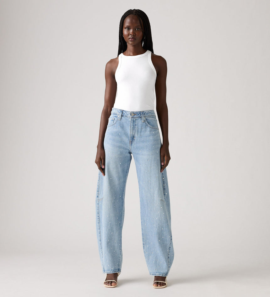 ขากระบอกโค้งยังคงอยู่! กางเกงยีนส์รุ่น Baggy Dad Barrel jeans ของเรามาพร้อมเอวปานกลางและทรงหลวมสบาย ๆ แต่ก็ยังคงความสวยงาม แถมมีพื้นที่เพิ่มขึ้นเล็กน้อยเพื่อลุคที่ดูเท่และมีสไตล์!