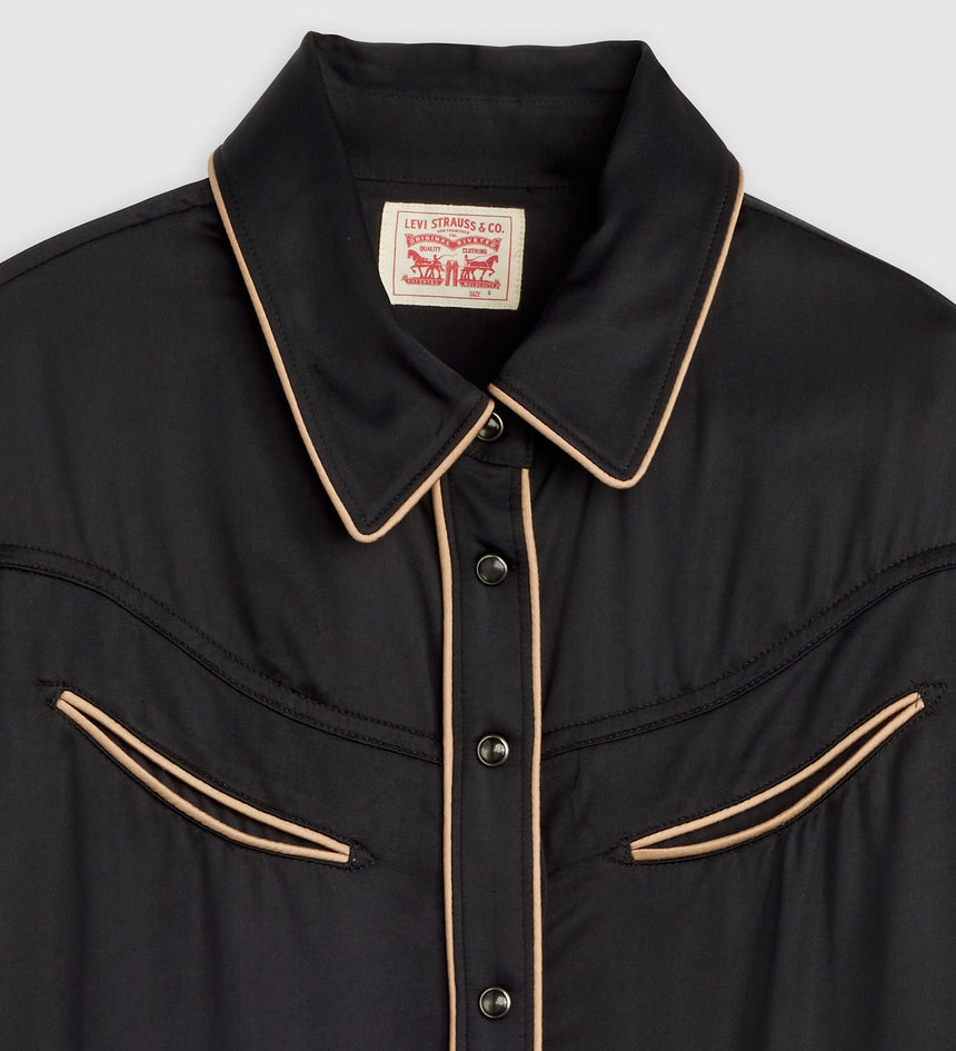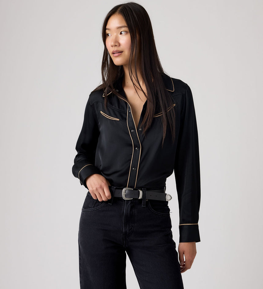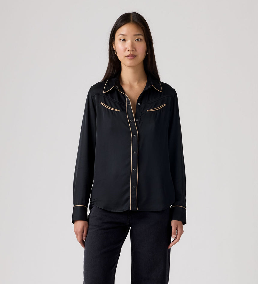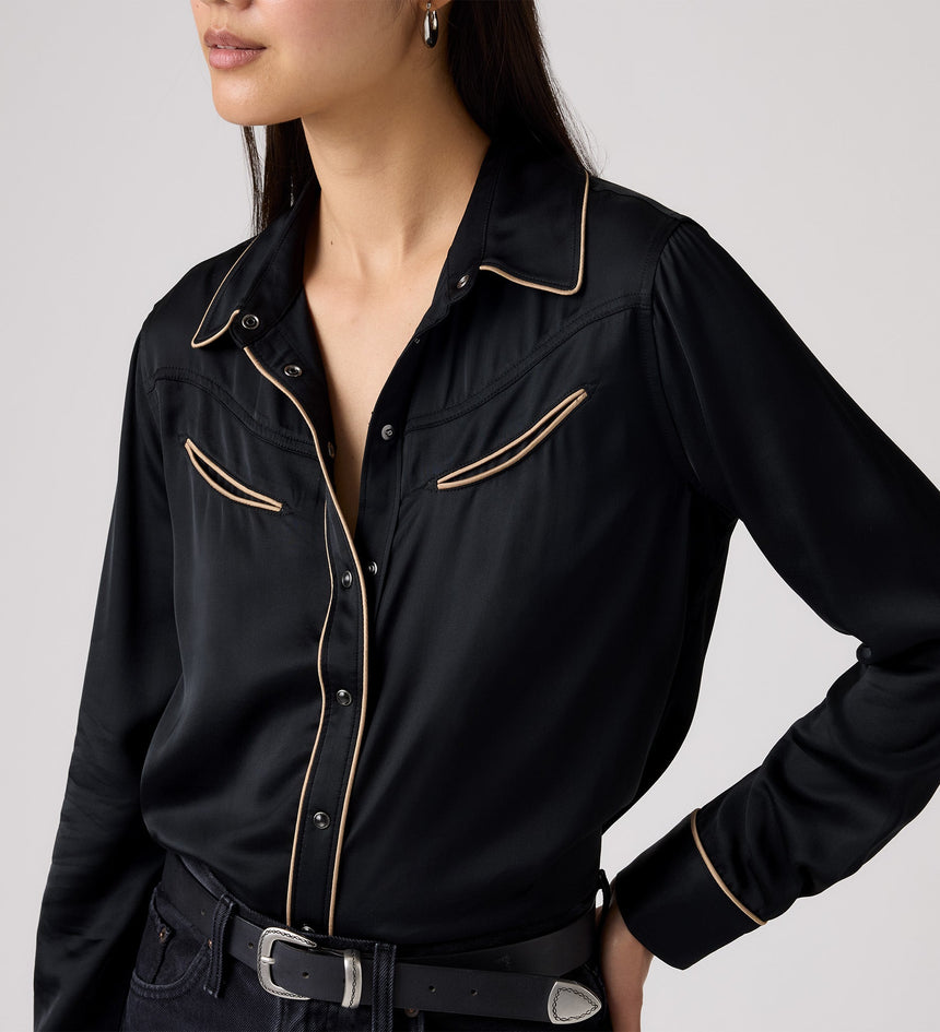 มีกลิ่นอายตะวันตกนิด ๆ ผสมผสานความเรโทรหน่อย ๆ เสื้อเชิ้ต Bradie Archival ตัวนี้มาพร้อมกับกระดุมด้านหน้าแบบคลาสสิก ดีเทลตะเข็บตัดสี และทรงมาตรฐาน