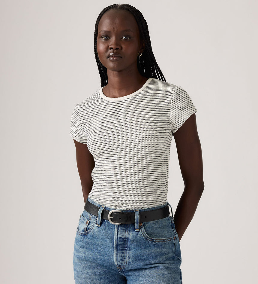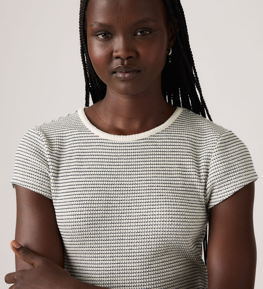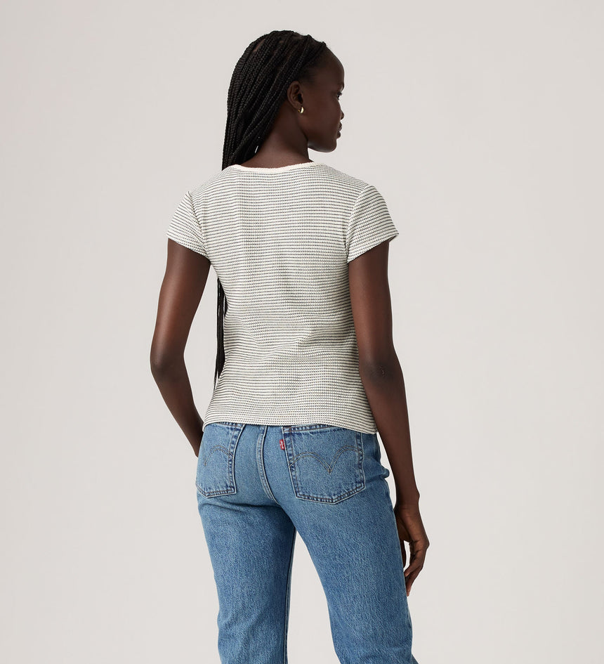 แรงบันดาลใจจากเสื้อถักชิ้นแรกๆ ที่เราเคยทำในช่วงต้นทศวรรษ 1900 เสื้อยืดแขนสั้น รุ่น Levi's® Dry Goods Waffle Cap-Sleeve Tee ได้ถูกนำกลับมาอีกครั้งในช่วงปลายทศวรรษ 1990 และตอนนี้ก็กลับมาอีกครั้ง