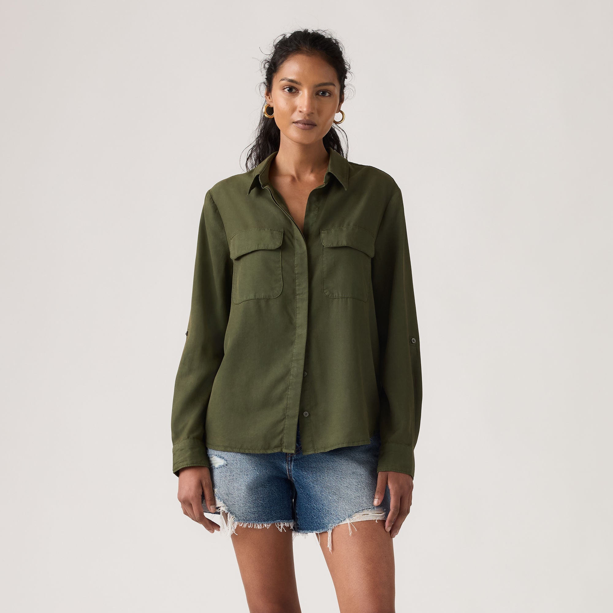 เสื้อเชิ้ตยูทิลิตี้สุดคลาสสิกที่ได้รับการปรับให้ดูสบาย ๆ ยิ่งขึ้น เราออกแบบเสื้อ Elaine Utility Shirt ด้วยกระดุมด้านหน้าแบบคลาสสิก, กระเป๋าปะ และทรงหลวมสบาย เพื่อความสบายตลอดทั้งวัน