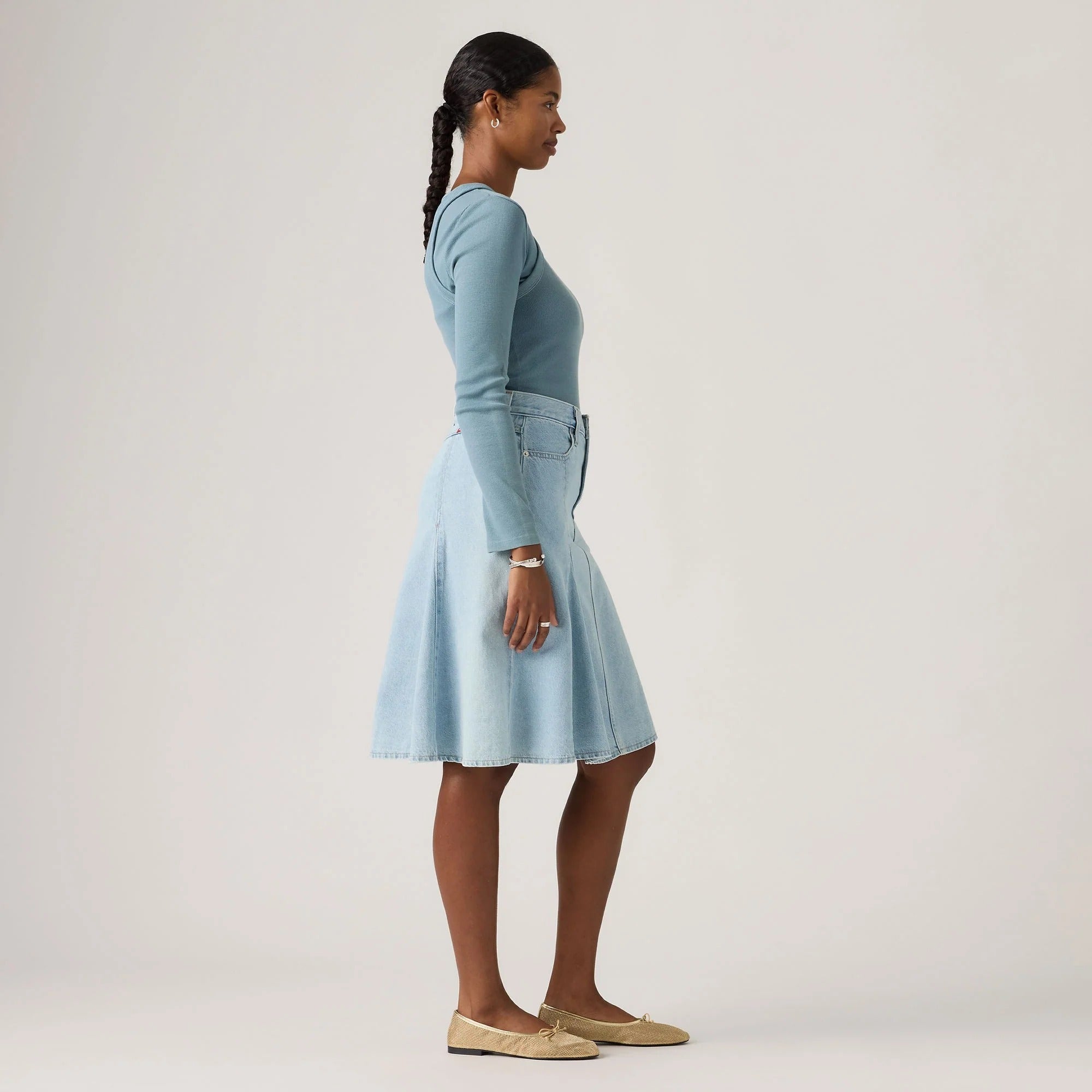 ผ้ายีนส์ตัวโปรดของคุณ—ตอนนี้มาในรูปแบบกระโปรงยาวระดับเข่าที่สมบูรณ์แบบ กระโปรง Godet Knee-Length Skirt ของเราออกแบบด้วยเอวระดับกลางที่ช่วยเสริมรูปร่างให้ดูดี—และทั้งหมดนี้ทำจากผ้ายีนส์น้ำหนักเบา