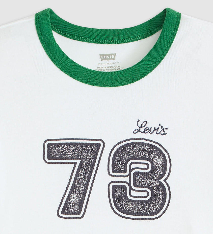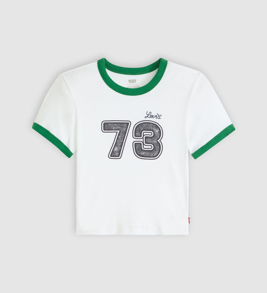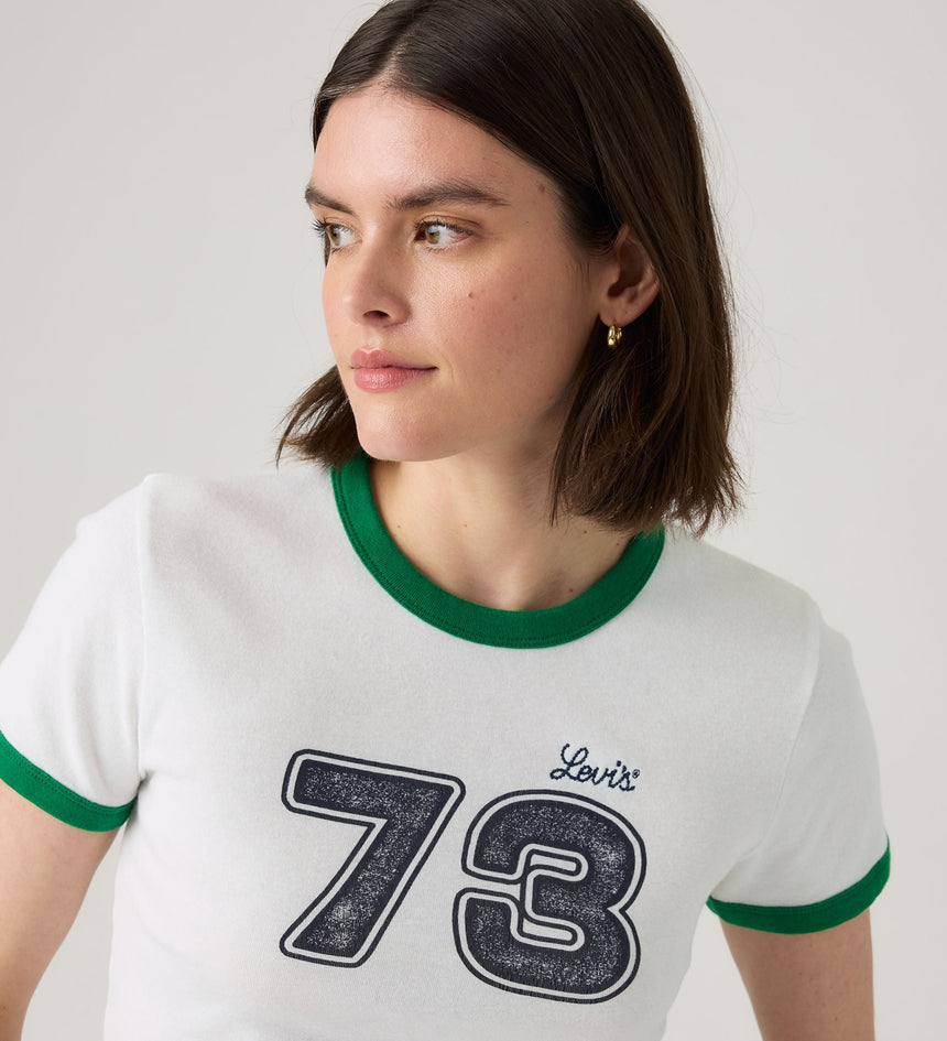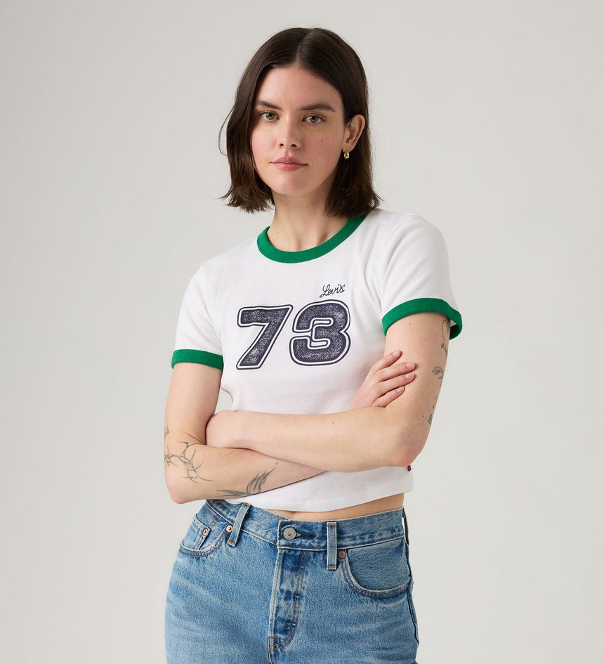 จะมีอะไรที่ทั้งเป็นไอคอนได้ในทันทีและดูสนุกสนานสุดๆ ได้ไหม? เราว่าได้แน่นอน ตัวอย่างเช่น เสื้อยืด Graphic Mini Ringer คอกลมน่ารักตัวนี้มาพร้อมกับทรงครอปและโลโก้ Levi's® ที่โดดเด่น ทำให้เกิดความสมดุลที่ลงตัวระหว่างความคลาสสิกและความสดใส