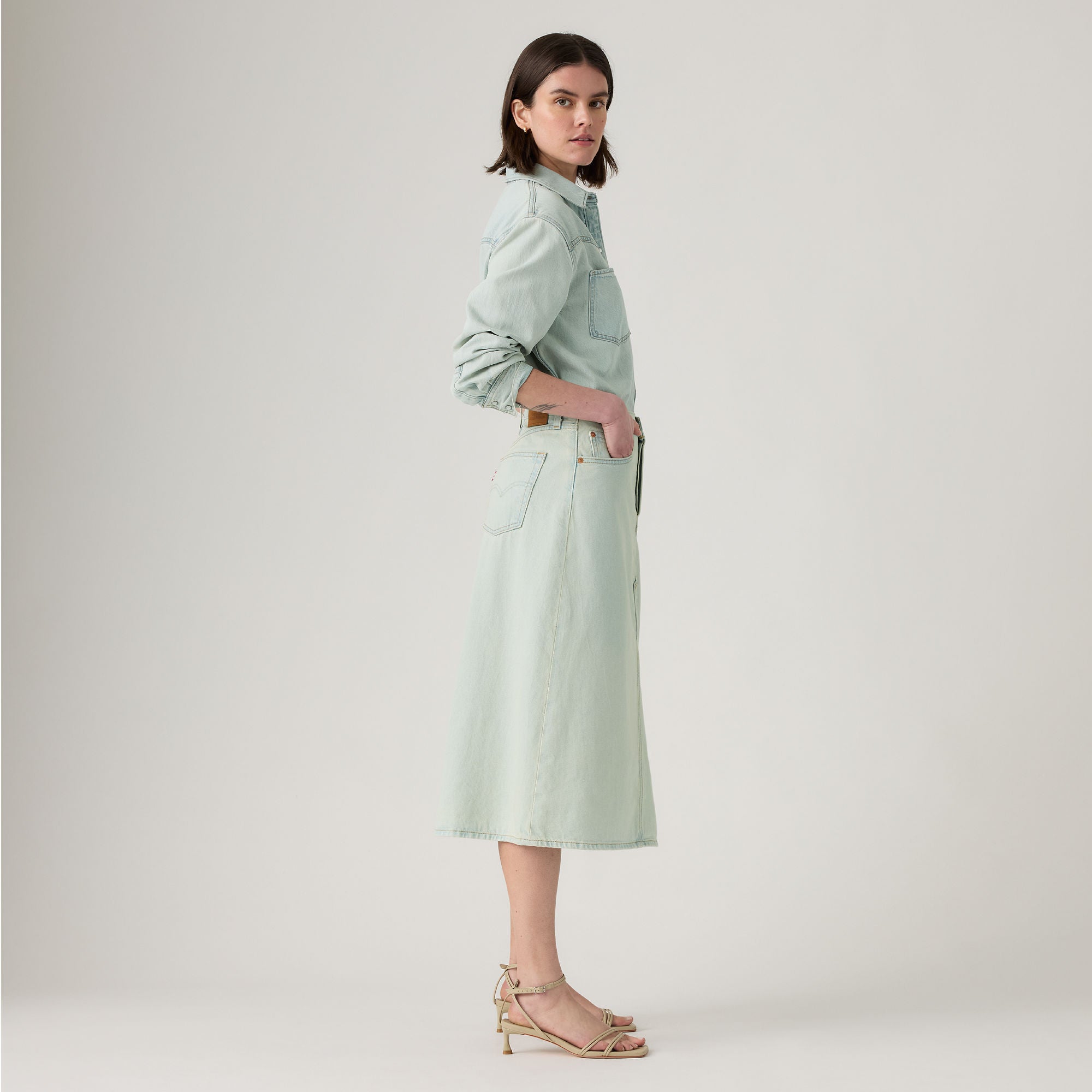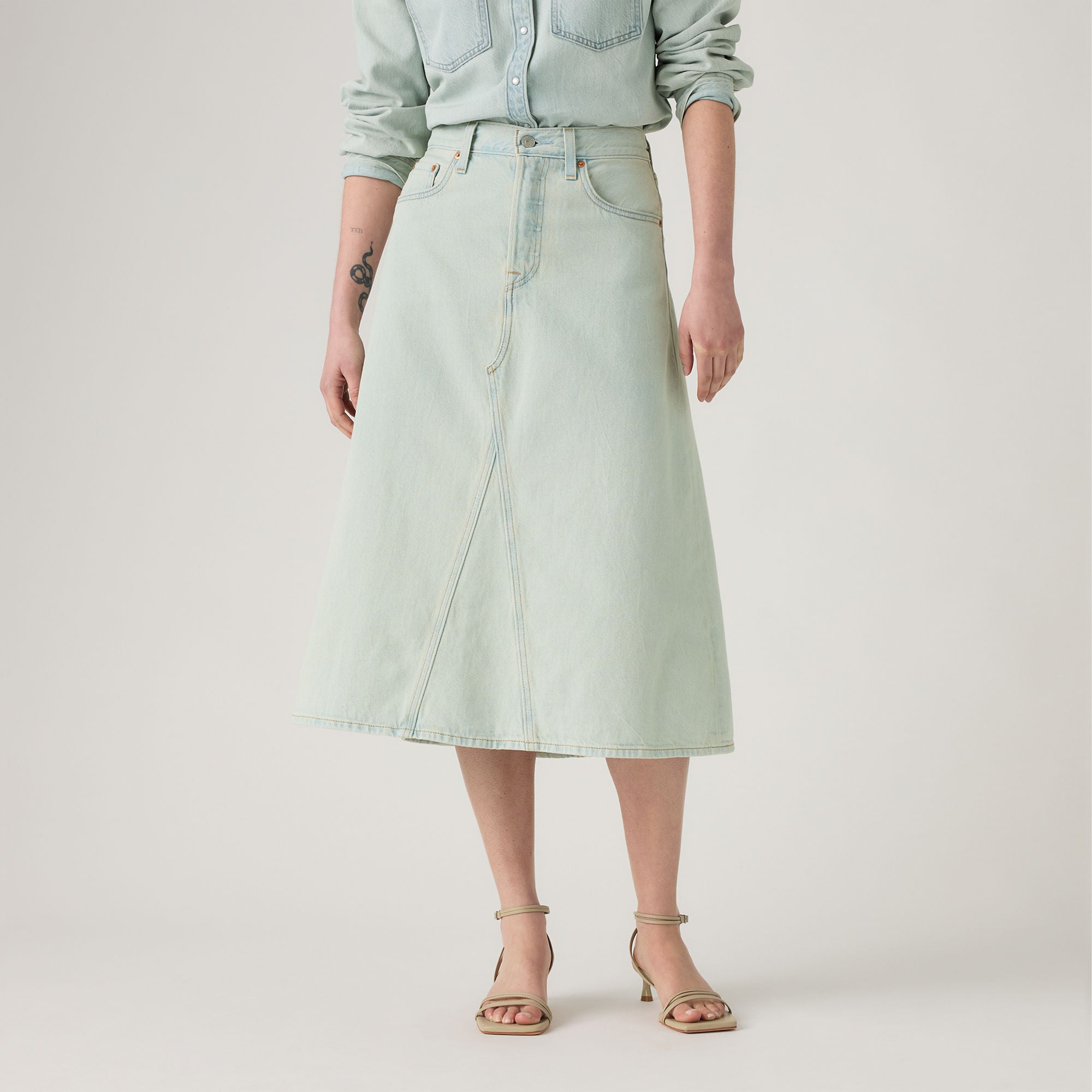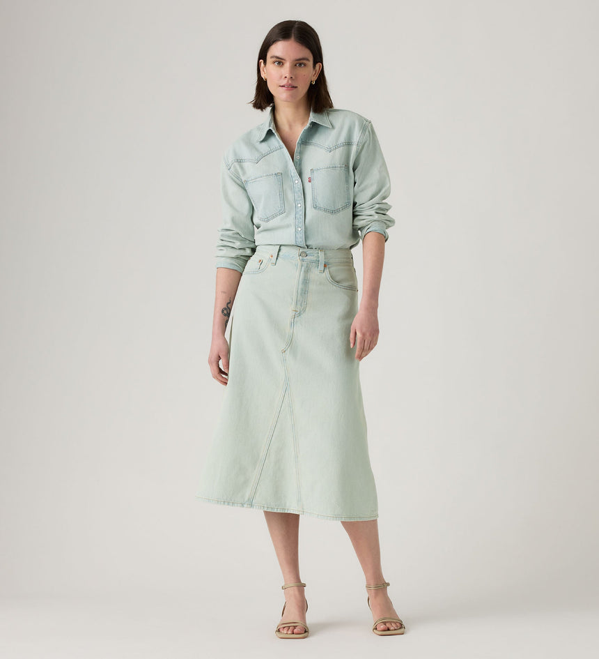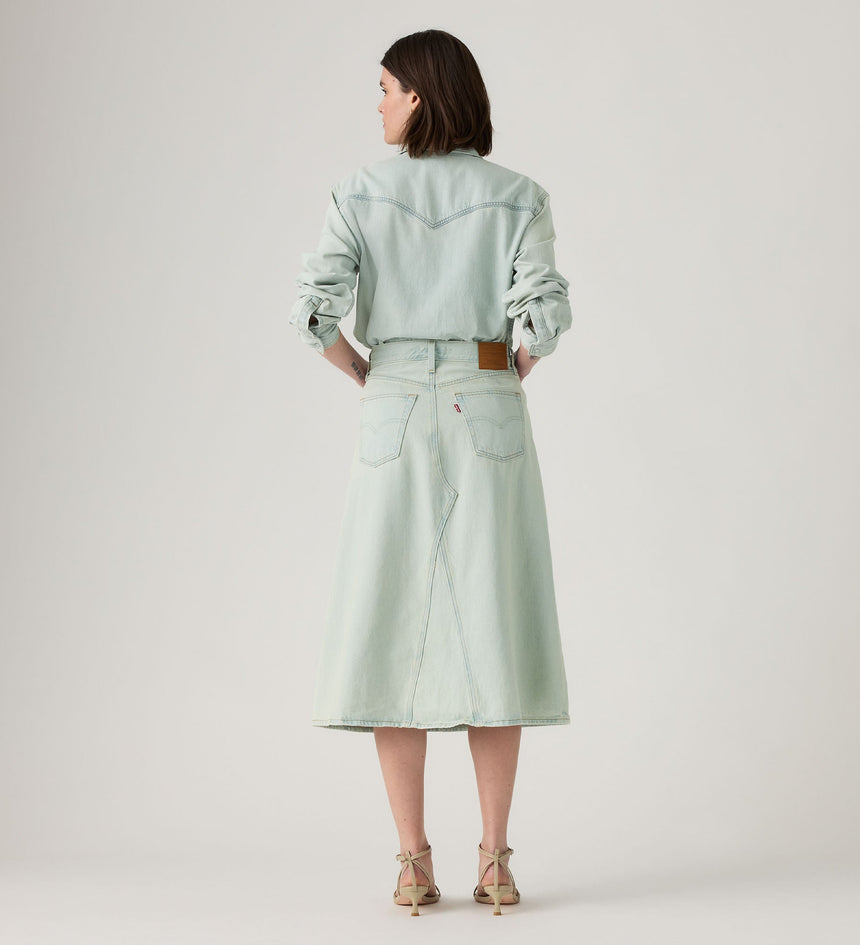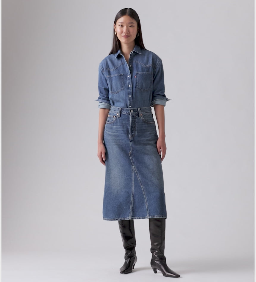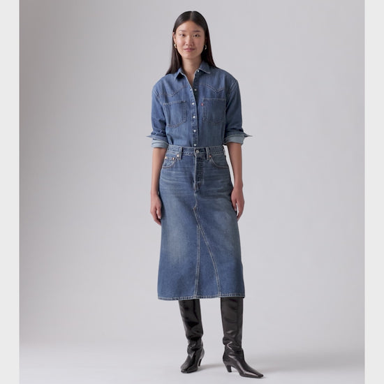 ลองเปลี่ยนจากกางเกงยีนส์ธรรมดา ๆ มาเป็น กางโปรงยีนส์รุ่น High-Rise A-Line Decon Skirt ของเราสิ เราออกแบบมาให้มีเอวสูงใส่ง่าย ทรงเอไลน์ยาวปานกลางที่สวยสง่า และดีไซน์ผ้ายีนส์แบบไม่สมบูรณ์