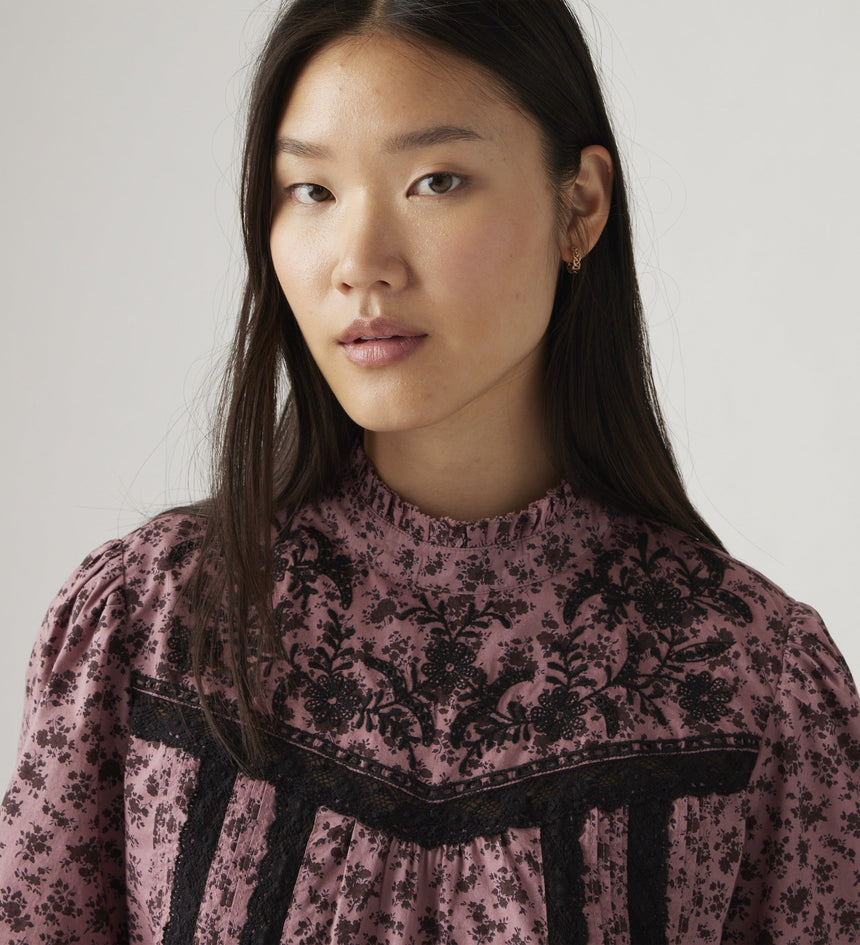 Laura Blouse มาพร้อมดีเทลแสนหวาน เนื้อผ้าเบาพริ้วที่มอบสัมผัสของความคลาสสิกโรแมนติก ดีไซน์เสื้อคอสูง เนื้อผ้านุ่ม และสไตล์ที่เข้ากันกับทุกลุค