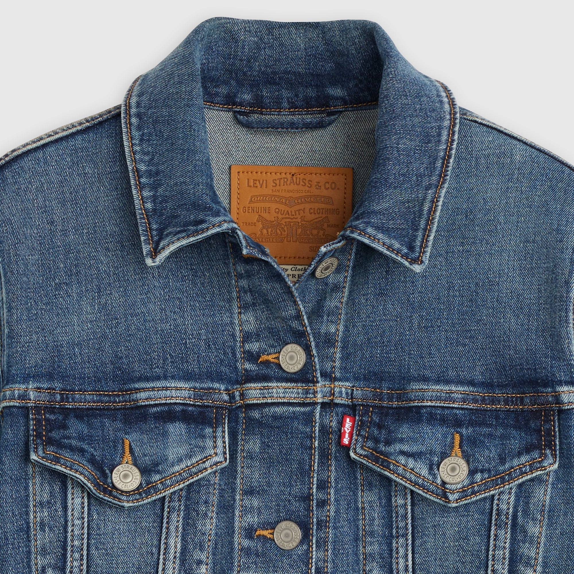 Original Trucker Jacket ของเราช่วยเสริมให้ชุดของคุณดูสมบูรณ์แบบ คุณคงหาแจ็คเก็ตที่มีรูปทรงใส่ง่าย, น้ำหนักที่ใช้งานได้หลากหลาย หรือความเท่ที่อยู่ในตัวได้ยากยิ่งกว่านี้อีกแล้ว พิเศษ: กระเป๋าด้านในที่ลึกมีพื้นที่กว้างขวางพอสำหรับของใช้จำเป็นของคุณ