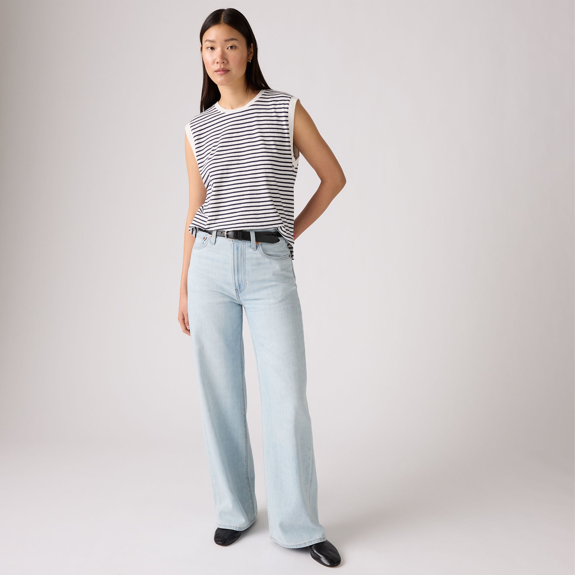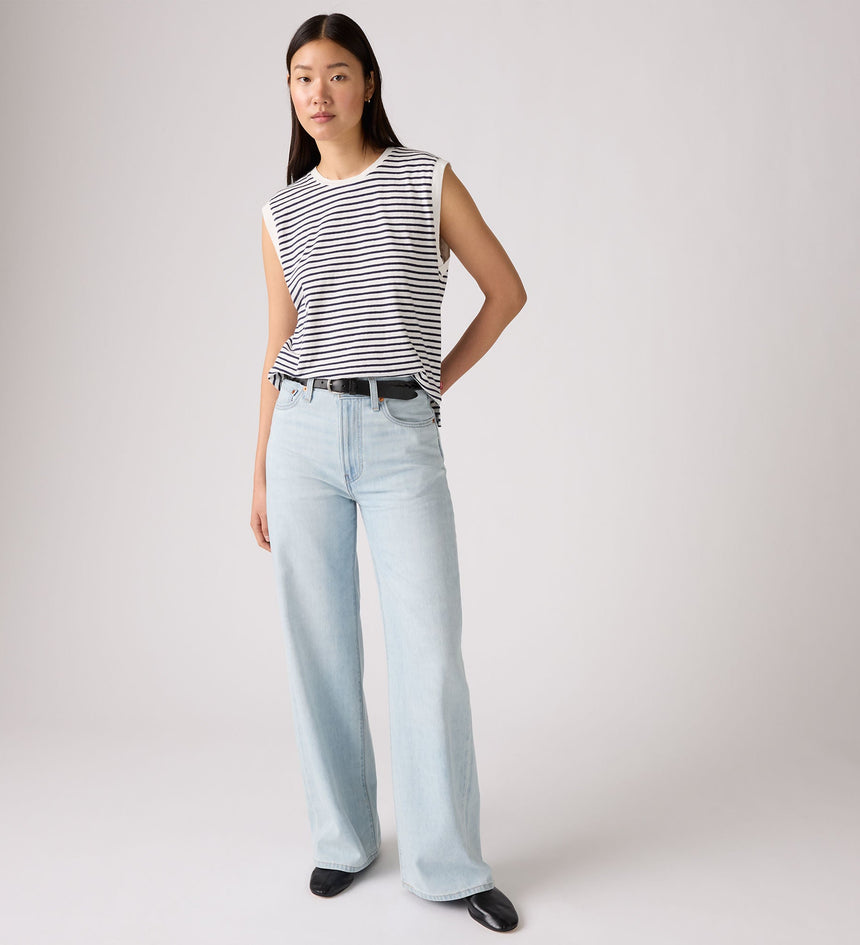 เหมือน กางเกงยีนส์รุ่น Ribcage jeans ของเราจะดีขึ้นไปอีกไม่ได้แล้ว แต่ขอแนะนำ กางเกงยีนส์รุ่น Ribcage Wide-Leg jeans ของเรา การผสมผสานระหว่างลุคเนี้ยบ ๆ ขาเรียวยาวแบบยุค 70 กับเอวสูงปรี๊ดสไตล์ยุค 90 ทำให้เกิดสัดส่วนที่ลงตัวสุด ๆ เพื่อเน้นช่วงเอวให้สวยงาม ด้วยเอวสูงถึง 12 นิ้ว รับรองว่าจะกลายเป็นกางเกงยีนส์ตัวโปรดที่ช่วยให้สะโพกดูเพรียว เอวดูคอดสวย ขาดูยาวขึ้นจนคุณต้องหลงรักแน่นอน