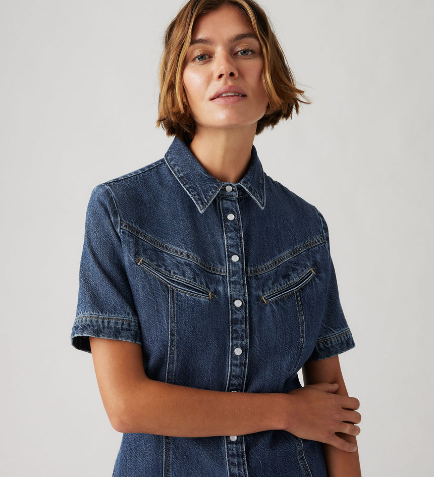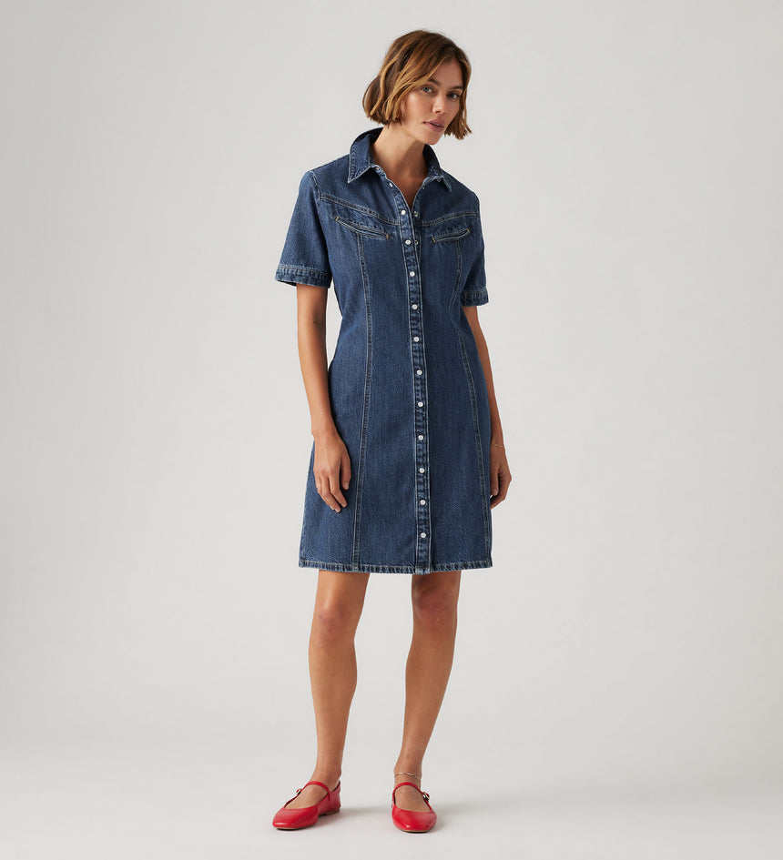 ชุดเดรสผ้ายีนส์อย่างชุดเดรสแขนสั้น Rinoa ของเราทำให้การแต่งตัวเป็นเรื่องง่าย เราออกแบบให้มีกระดุมติดด้านหน้า ทรงมาตรฐาน และรายละเอียดพิเศษ