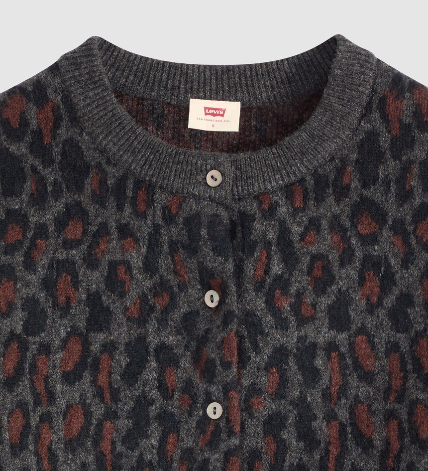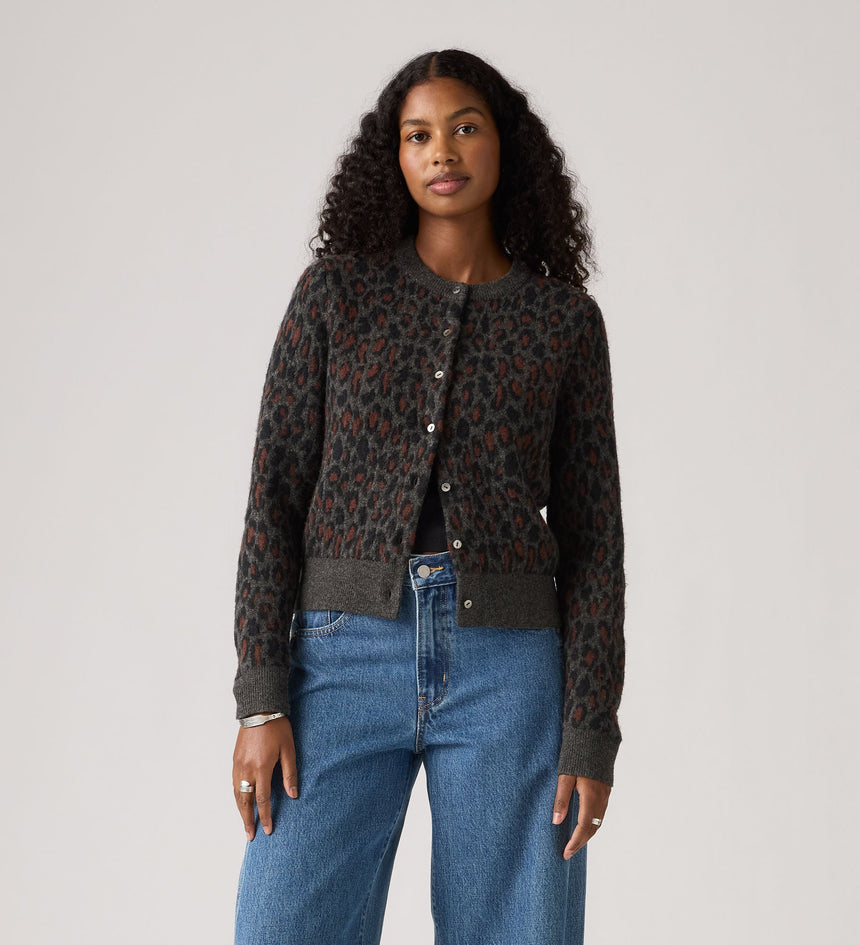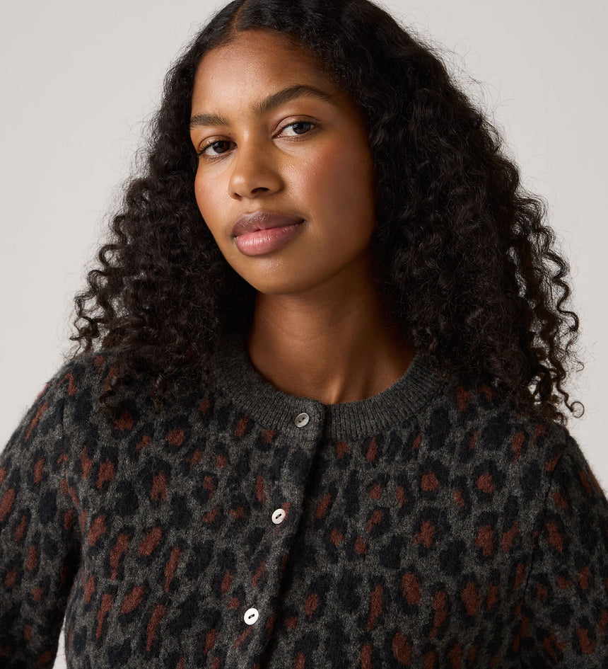 ความสมดุลที่ลงตัวระหว่างความสบายและสไตล์ เสื้อคาร์ดิแกน Tara Wooly ของเรามาพร้อมกับกระดุมด้านหน้า ทรงมาตรฐานที่ใส่สบาย และลายเสือดาว