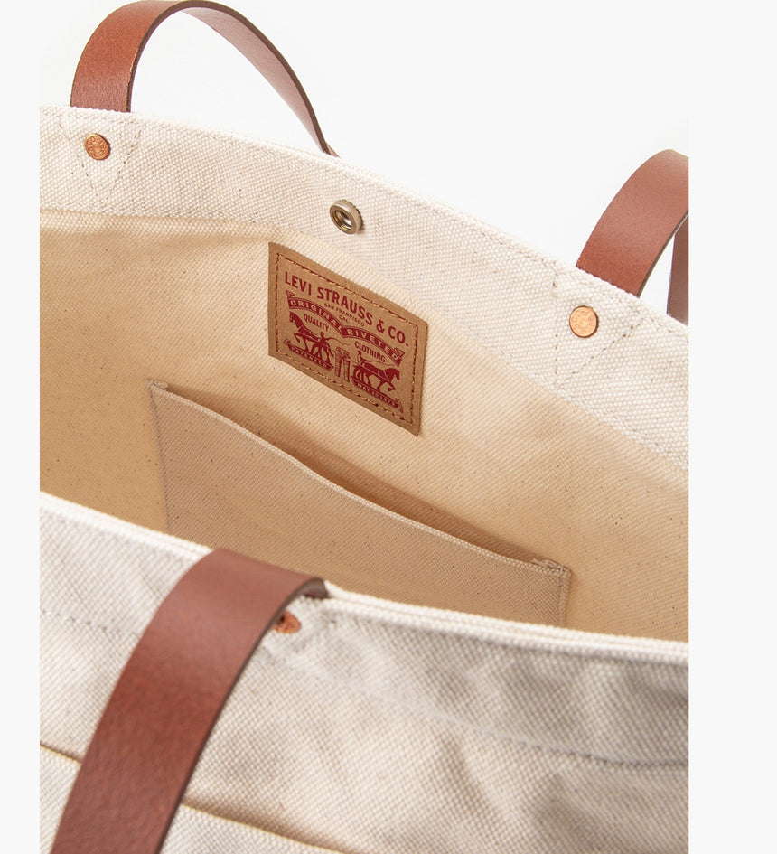 กระเป๋า Tote-All Bag ได้รับแรงบันดาลใจจากคลังสะสมของเรา นี่คือกระเป๋าที่ใส่ของได้ทุกอย่างที่คุณต้องการ เราตัดเย็บกระเป๋าใบนี้ด้วยผ้าคอตตอนแคนวาสที่ทนทาน พร้อมสายหนัง มีช่องกระเป๋าหลักที่มีตัวปิดแบบกระดุม กระเป๋าปะด้านใน ใส่หมุดสำหรับเสริมความแข็งแรง และยังมีหูจับกระเป๋าสองอันเพื่อการใช้งานที่สะดวก