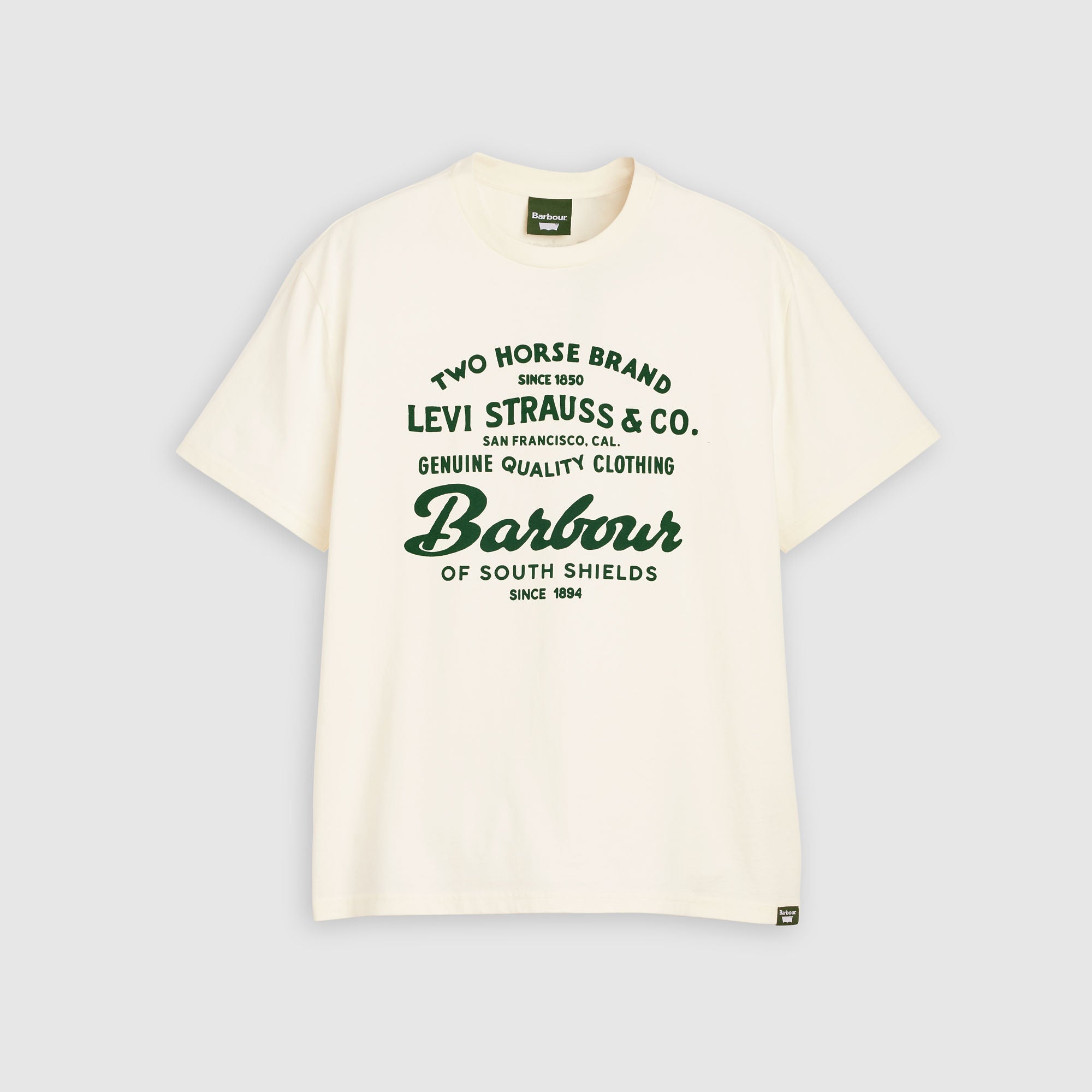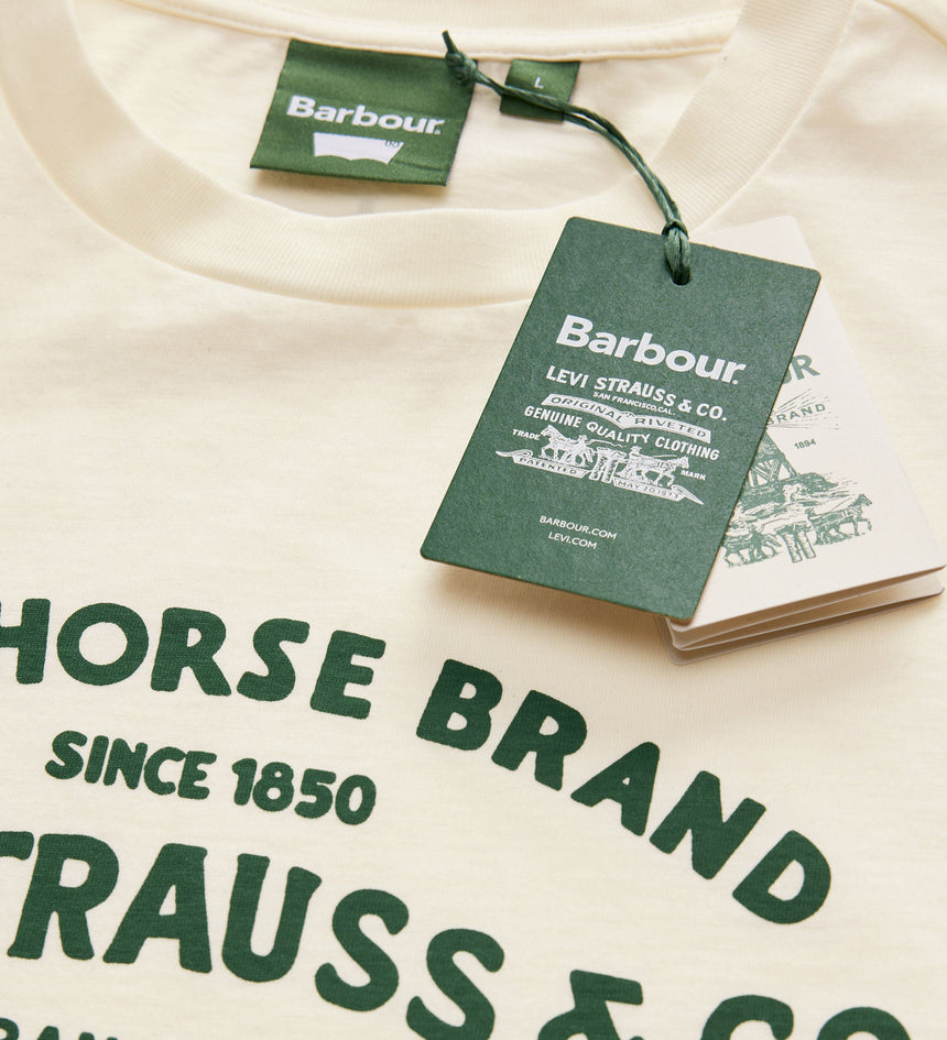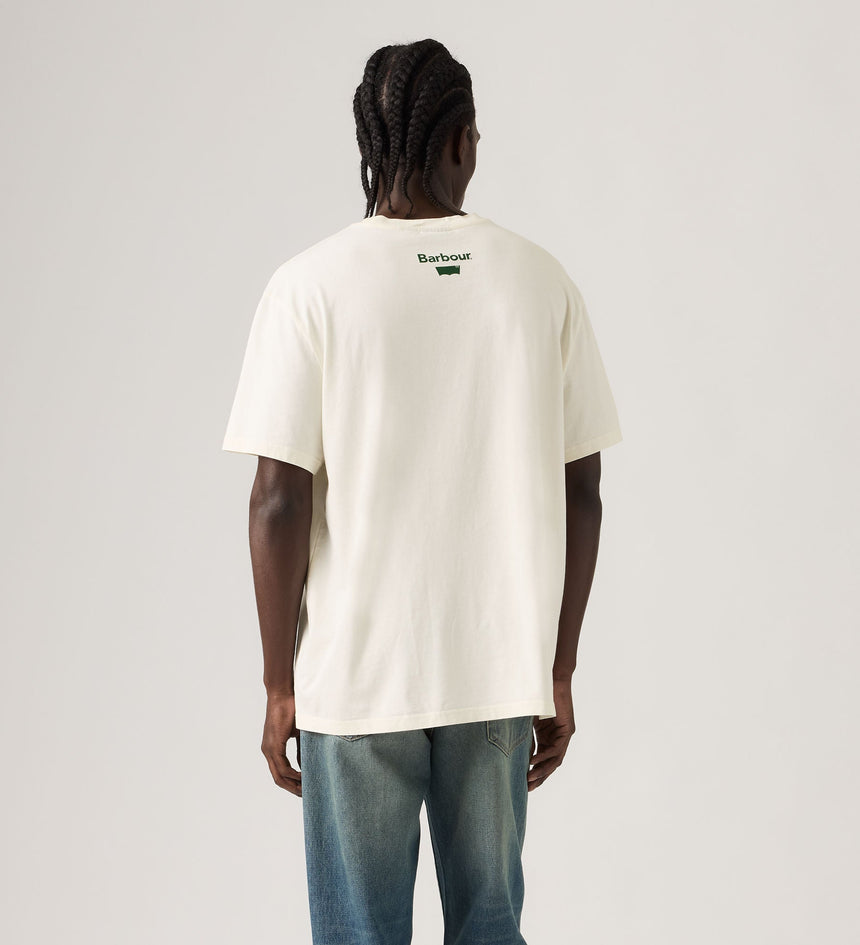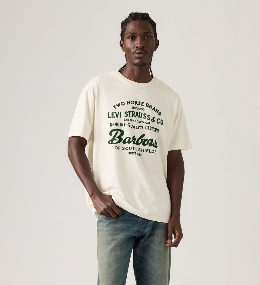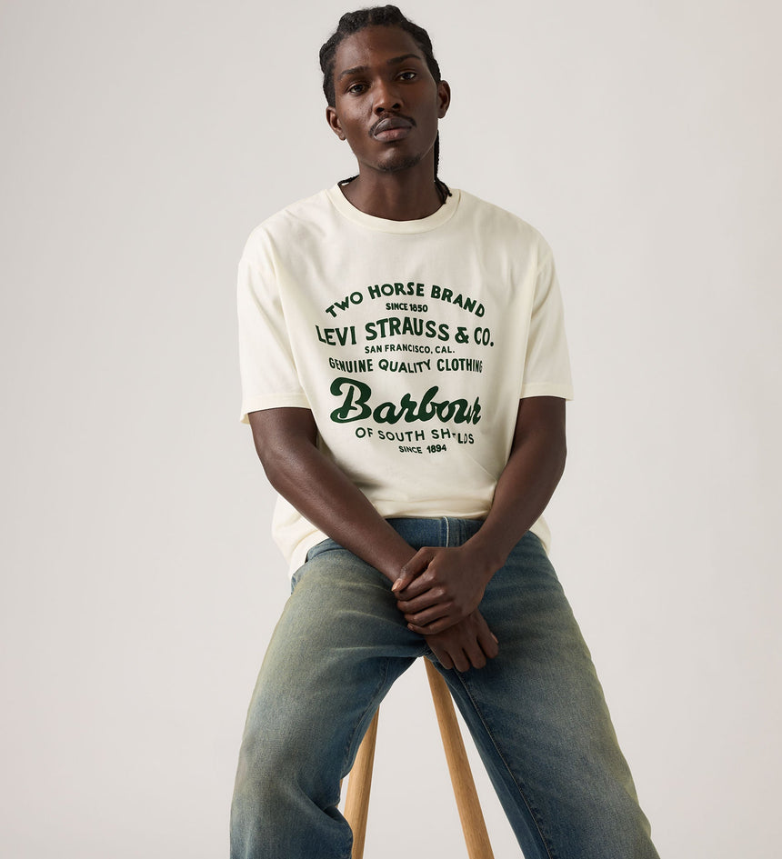 เราร่วมมือกับแบรนด์ดัง Barbour เพื่อนำเสนองานฝีมืออันโดดเด่นและความเป็นเอกลักษณ์เฉพาะตัวที่ผสานความดิบของยีนส์ Levi's® เข้ากับรายละเอียดอันเป็นเอกลักษณ์ของ Barbour เสื้อยืดลายกราฟิกตัวนี้ตัดเย็บแบบพอดีตัวและผสมผสานโลโก้ของทั้งสองแบรนด์เข้าด้วยกันเพื่อสื่อถึงมรดกและงานฝีมือของเรา
